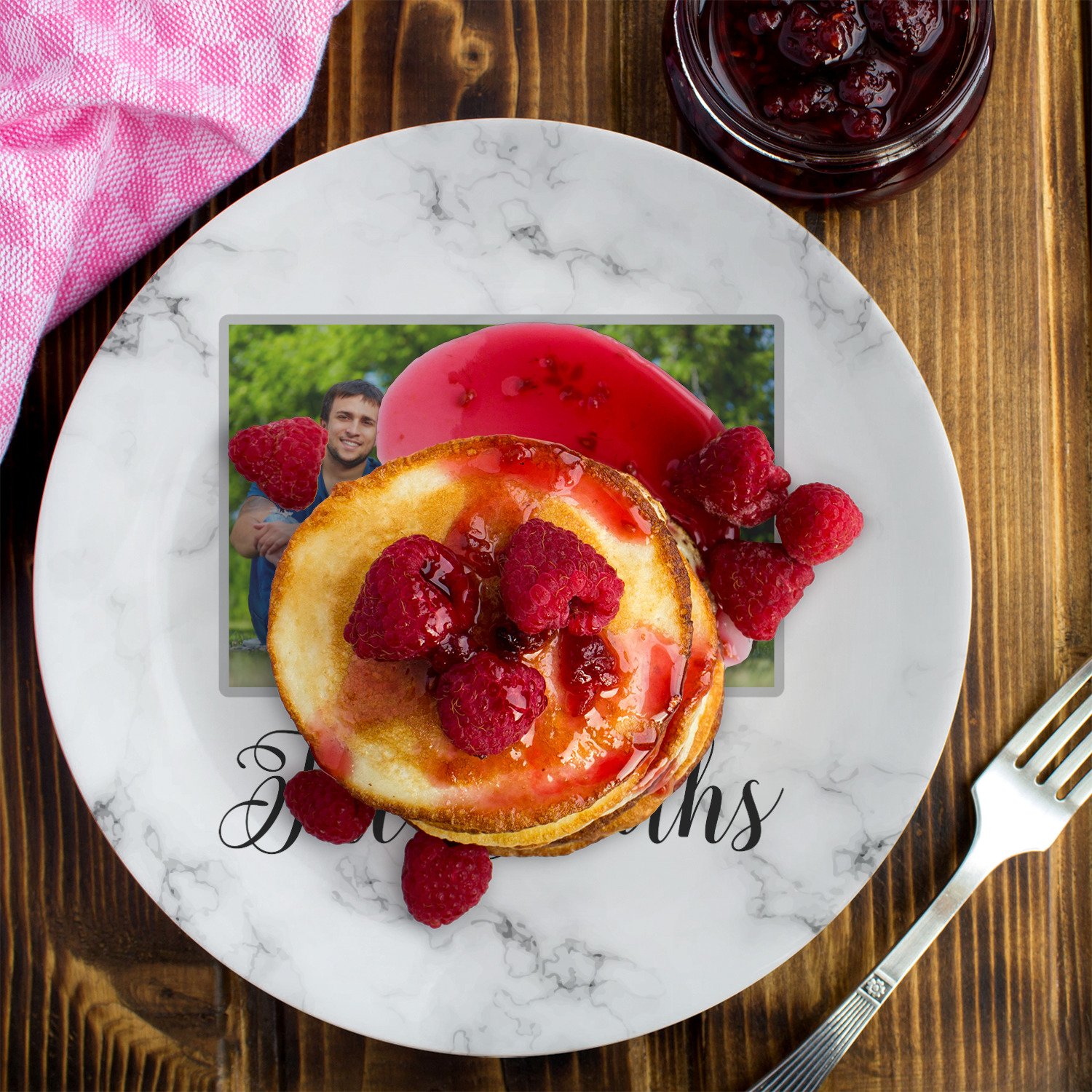 These personalized plates are free of BPA and break resistant, to survive the many drops of daily use. Your customization is displayed across the entire face of the plate, while the back of the plate remains white in color. We offer these plates in two different sizes: 8 inches and 10 inches in diameter.