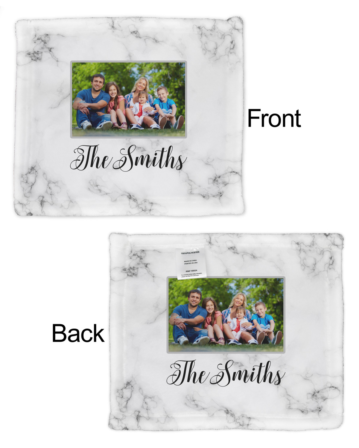 Our customized security AKA lovey blankets are available in 2 print styles - single sided or double sided. You can customize both the front and the back of the lovey security blankets. You have the option to choose different designs or the same design - the choice is yours.