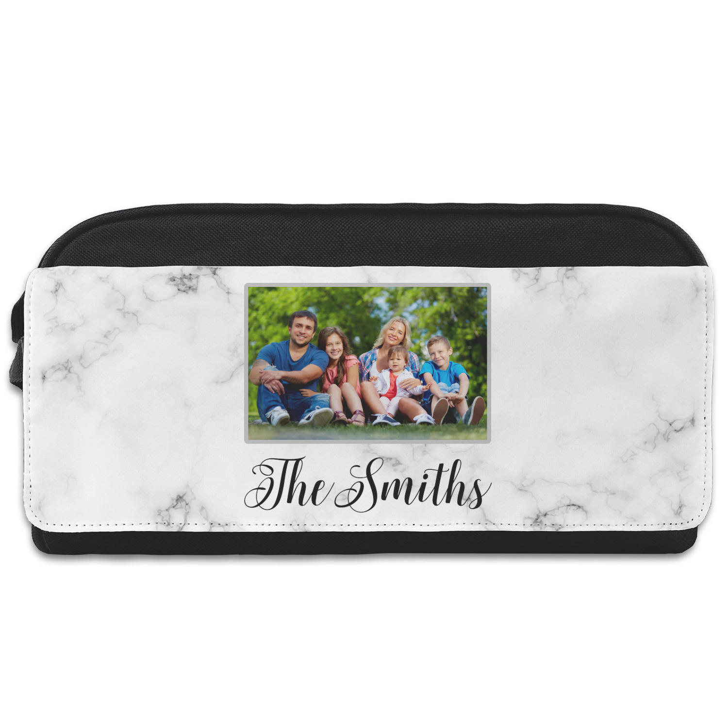 This shoe bag has a large opening to fit your shoes and a double zipper and velcro flap to close it. The small side pouch has a flap that can be customized to your liking. For handling, there is a looped handle on the end so it can easily be held or for using it to clip to a bag. Great for golf shoes and match the flap to your bag and clubs or for sports shoes and have your team and player information on the flap. If you aren't the athlete type, this bag is perfectly suited for the traveler looking to keep their shoes separate from their clothes. It would also be a great complement to one of our custom suitcases.