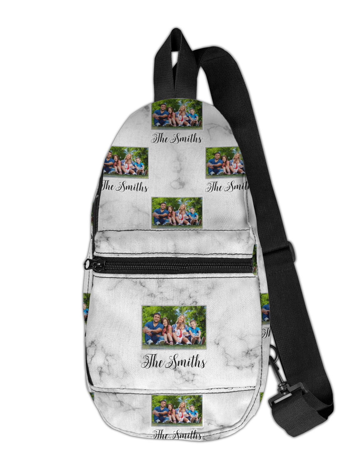 These sling bags are made from a durable polyester canvas. The fabric is printed with your design, then cut and hand sewn right here in the USA.