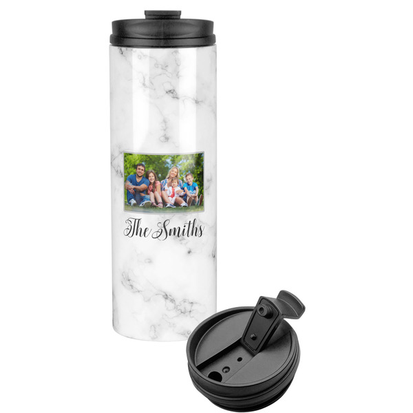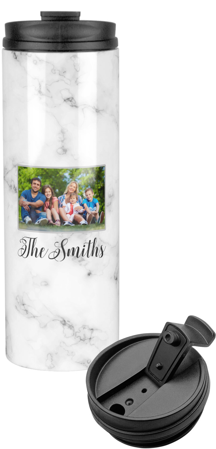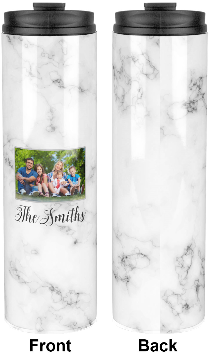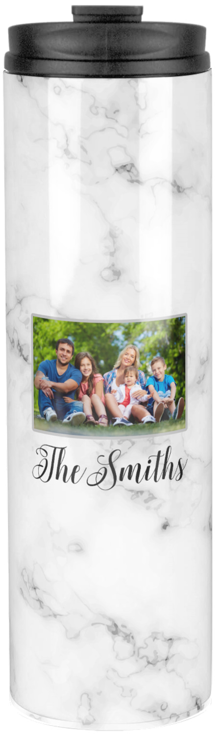 Sip your favorite drink on the go with your own custom stainless steel tumbler! Our slim cylinder shape is perfect for holding your drink in hand, in your purse, or in your backpack! This sleek and modern tumbler is a perfect gift for coffee and tea lovers keeping their drinks just the right temperature throughout the day! We offer two sizes, a 16 oz. or 20 oz., to personalize. Browse and customize or design or create your own with our online design studio!