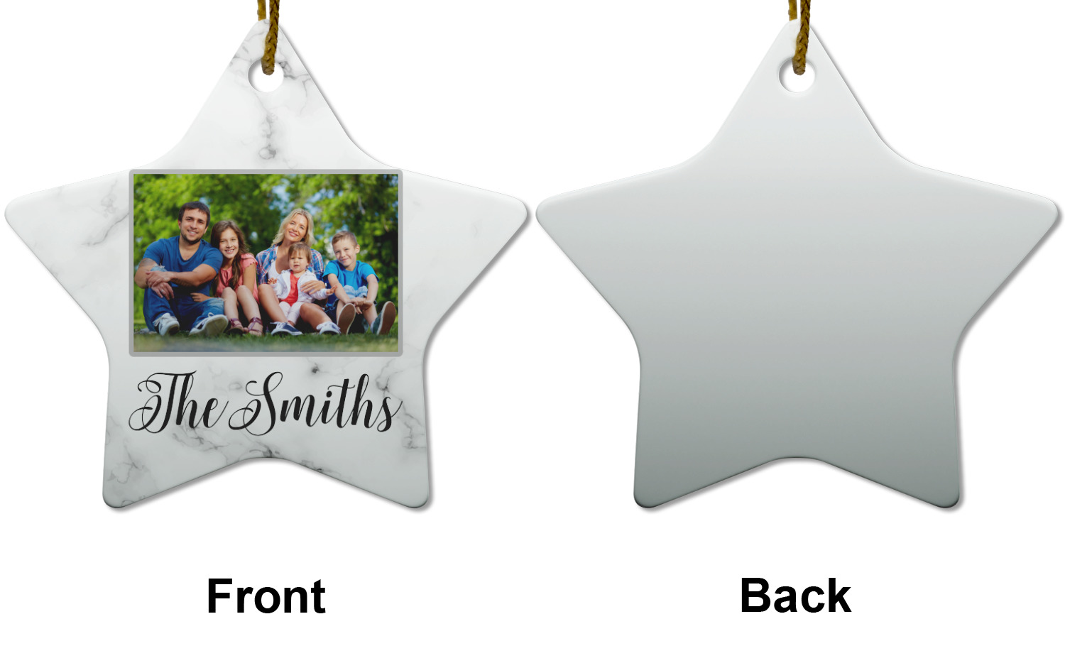Have a happy holiday and share the joy of Christmas with your loved ones by hanging up personalized ceramic ornaments! Ornaments add a touch of who you are and the things you love onto the Christmas tree! Create custom ornaments for the kids and have them hang up their own star with their name, or pay remembrance this holiday to missed loved ones with our ceramic heart ornament. Browse many of our unique designs and customize them the way you'd like! From monograms, logos, and patterns, we have it all! You can even upload a photo of your family for us to print onto the ornament! The possibilities are endless!