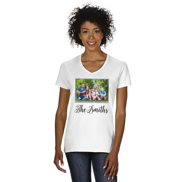 Introducing our versatile Women's V-neck shirt, tailored for a flattering missy contoured silhouette. Crafted from premium 5.3 oz. USA cotton with sustainable practices, it features cap sleeves and a tear-away label for added convenience. With sizes catering to all, enjoy comfort and style in every wear.