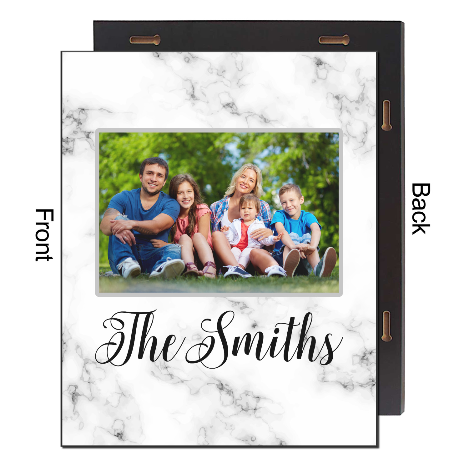 The back of the wood print has 2 keyhole slots on the two sides for hanging both in landscape, as well as portrait mode.