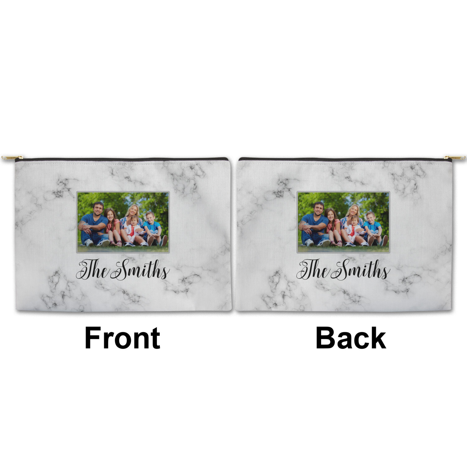 You can design both the front and the back of the pouch - same design, two complementary designs or two totally different designs - the choice is yours! We offer many different personalization styles i.e. name, name & initial, monograms - so the choice to personalize is also yours.
