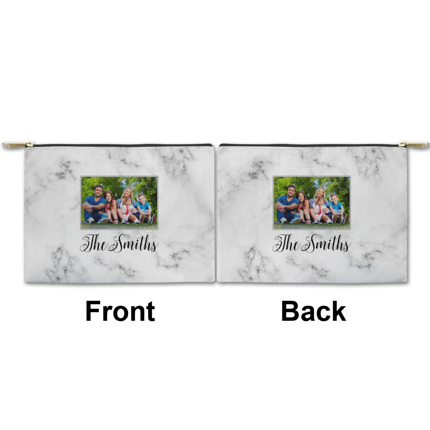 You can design both the front and the back of the pouch - same design, two complementary designs or two totally different designs - the choice is yours! We offer many different personalization styles i.e. name, name & initial, monograms - so the choice to personalize is also yours.