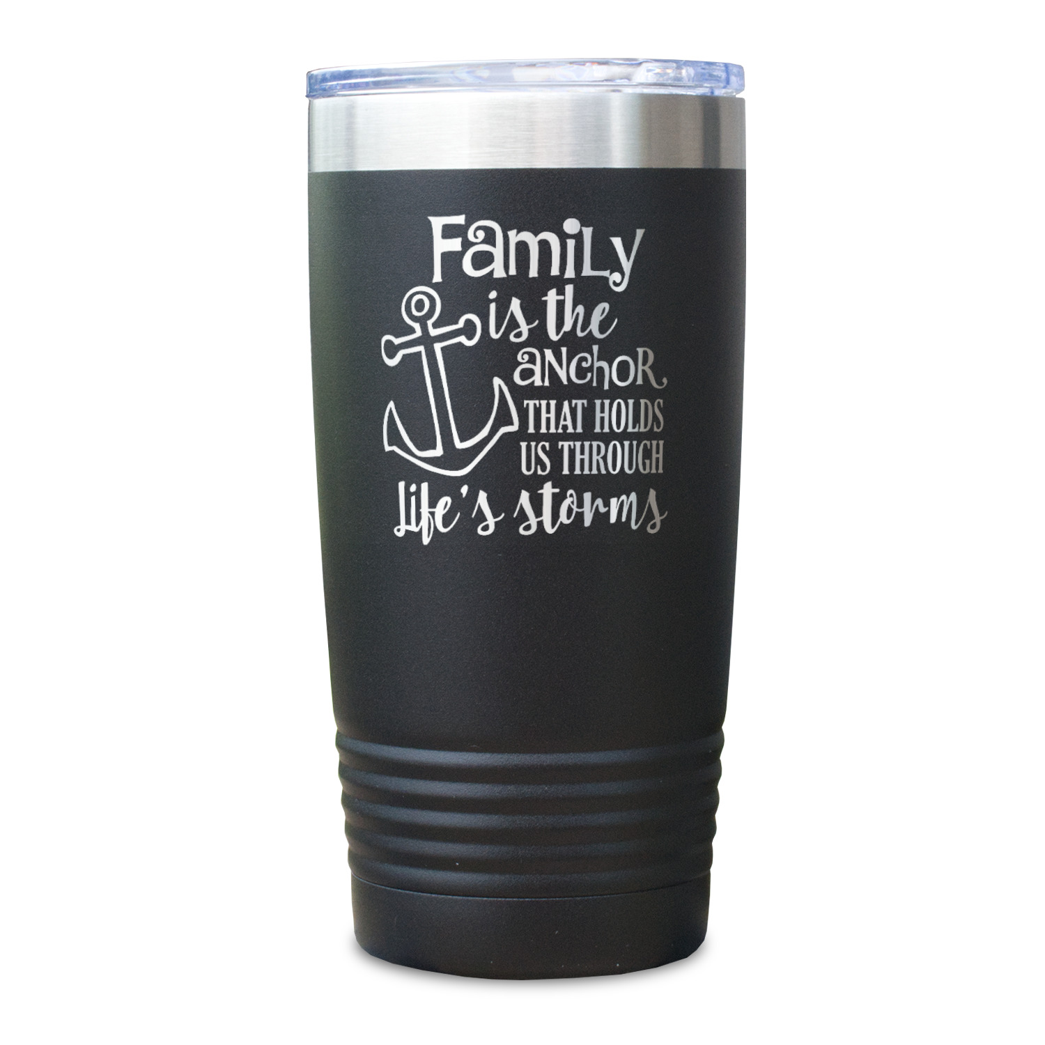 This design is made from a beautiful quote that says "Family is the anchor that holds us through life's storms." It also features an anchor illustration. This beautiful quote looks great on any of our laser engraved products from tumblers to passport holders.