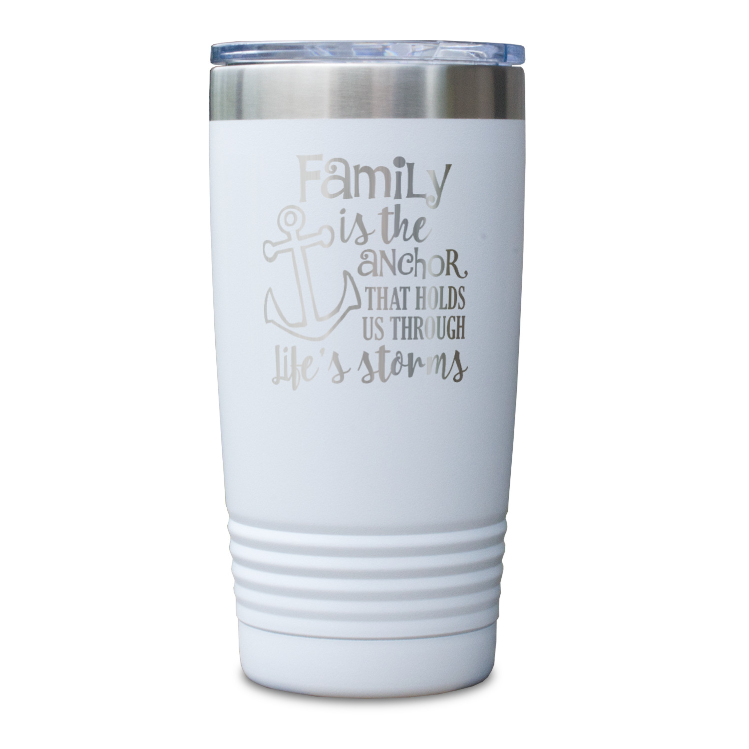 This design is made from a beautiful quote that says "Family is the anchor that holds us through life's storms." It also features an anchor illustration. This beautiful quote looks great on any of our laser engraved products from tumblers to passport holders.