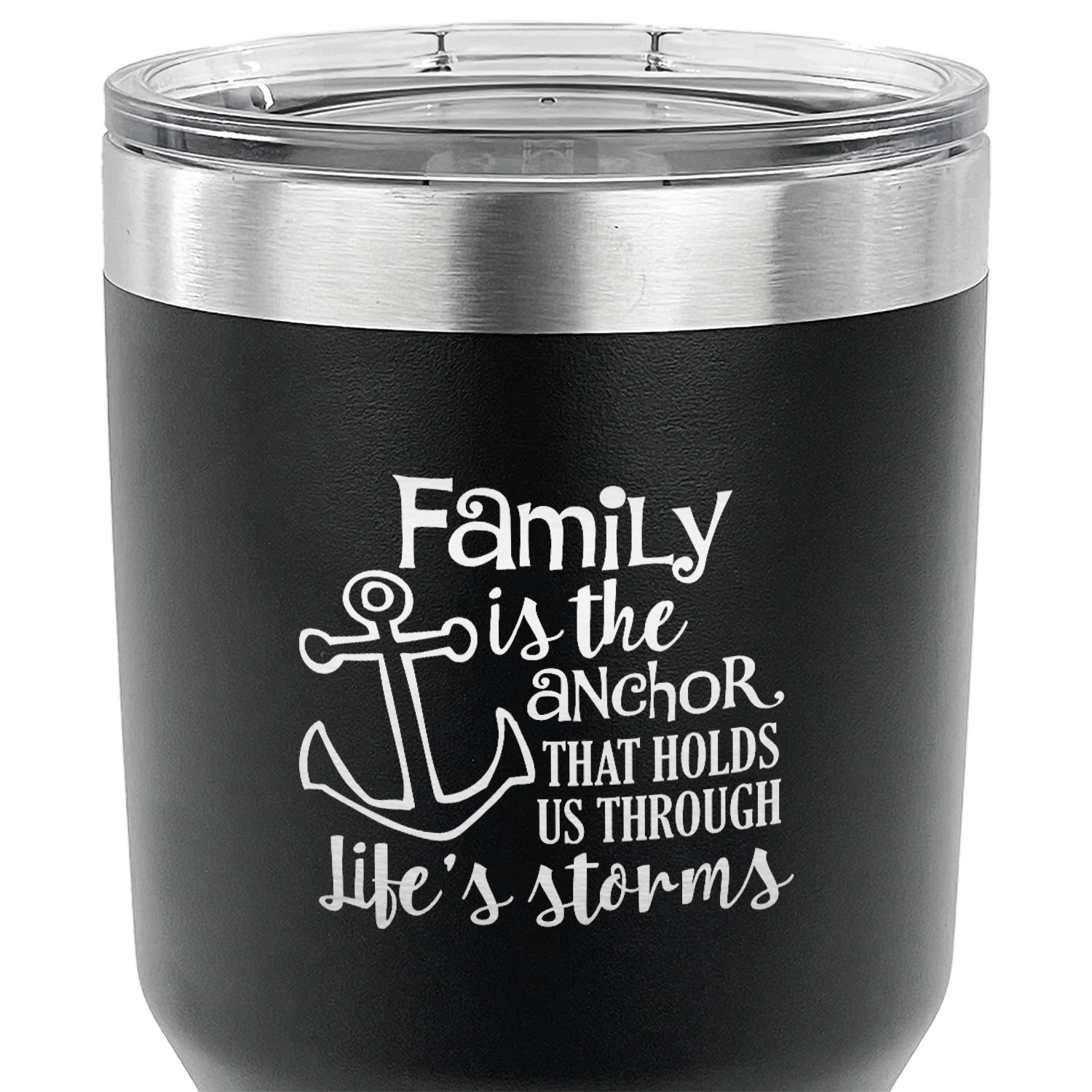 This design is made from a beautiful quote that says "Family is the anchor that holds us through life's storms." It also features an anchor illustration. This beautiful quote looks great on any of our laser engraved products from tumblers to passport holders.