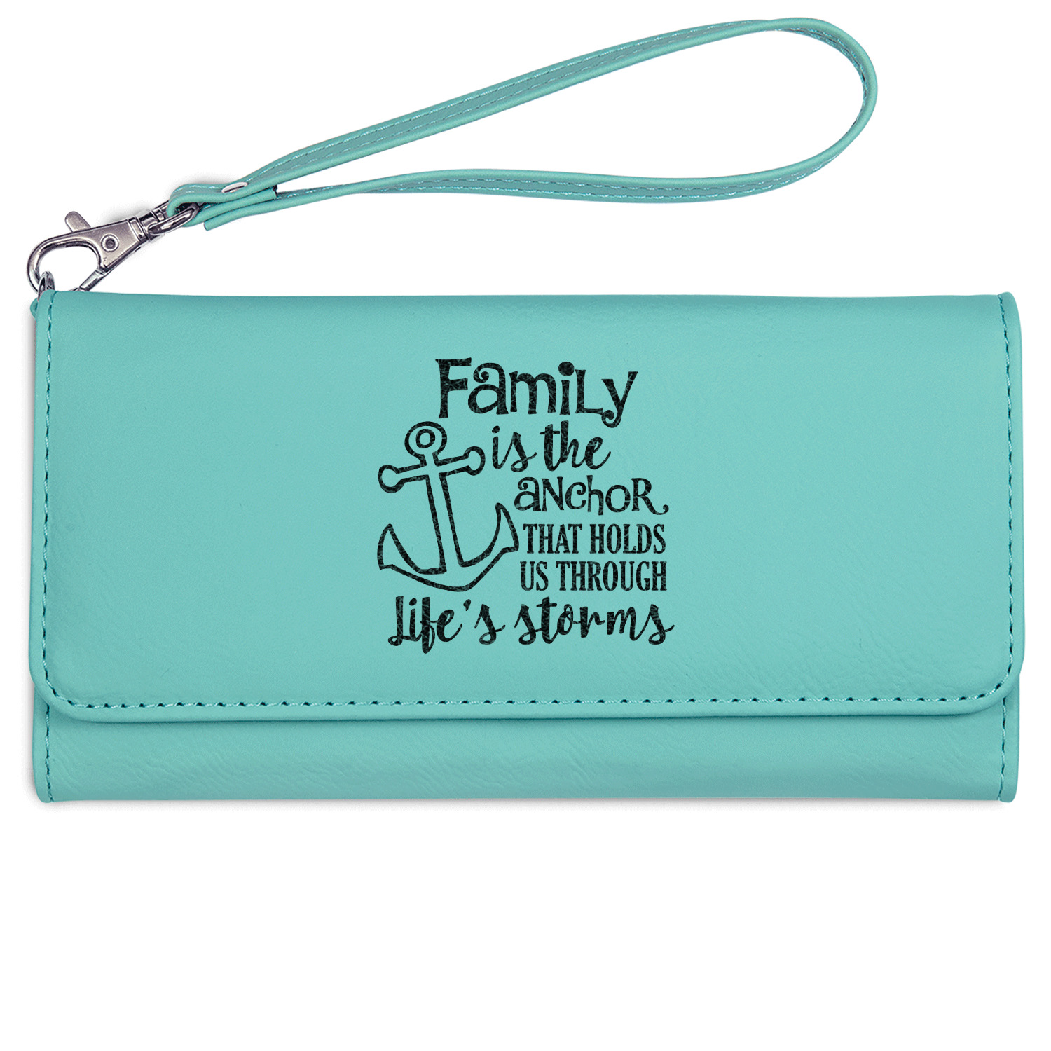 This design is made from a beautiful quote that says "Family is the anchor that holds us through life's storms." It also features an anchor illustration. This beautiful quote looks great on any of our laser engraved products from tumblers to passport holders.