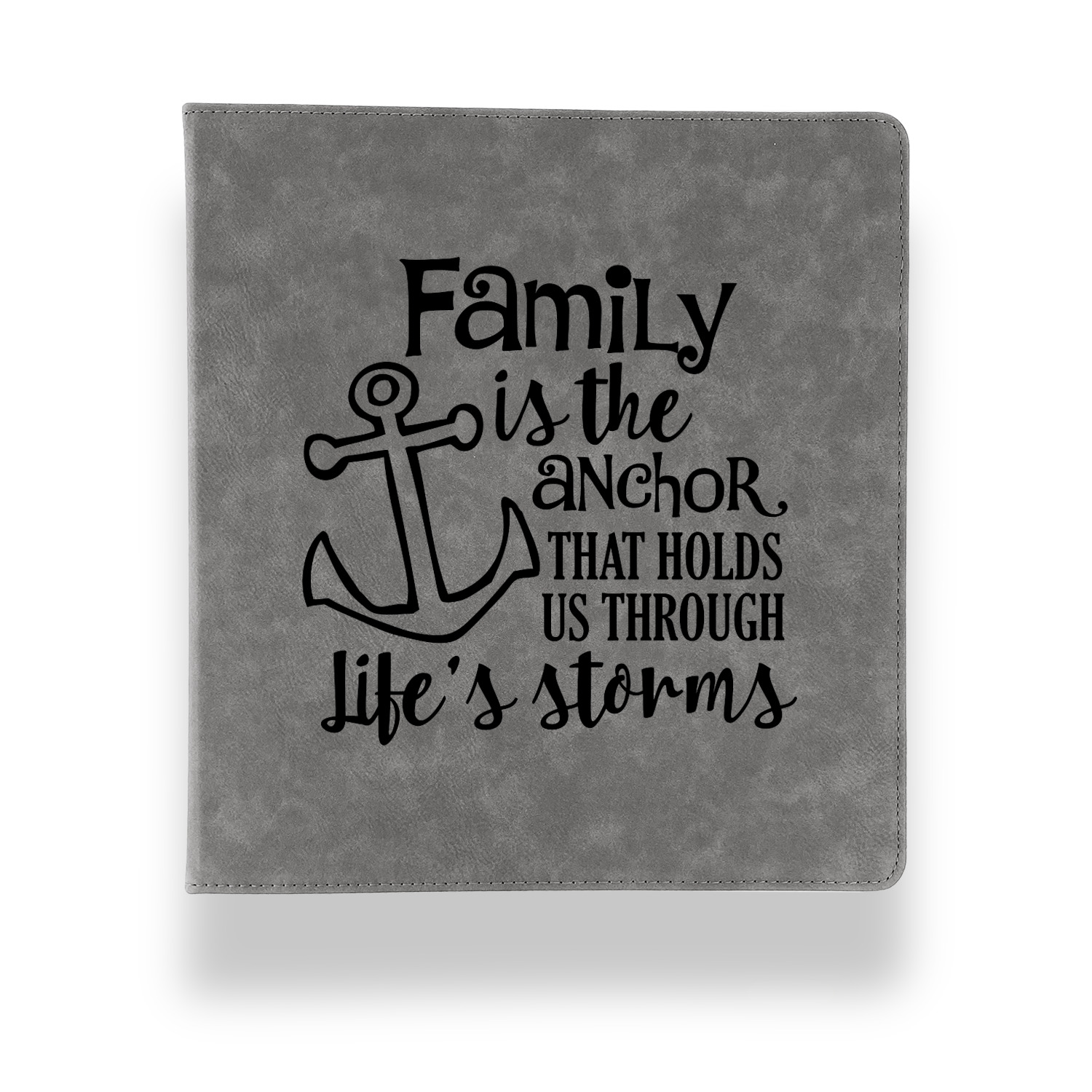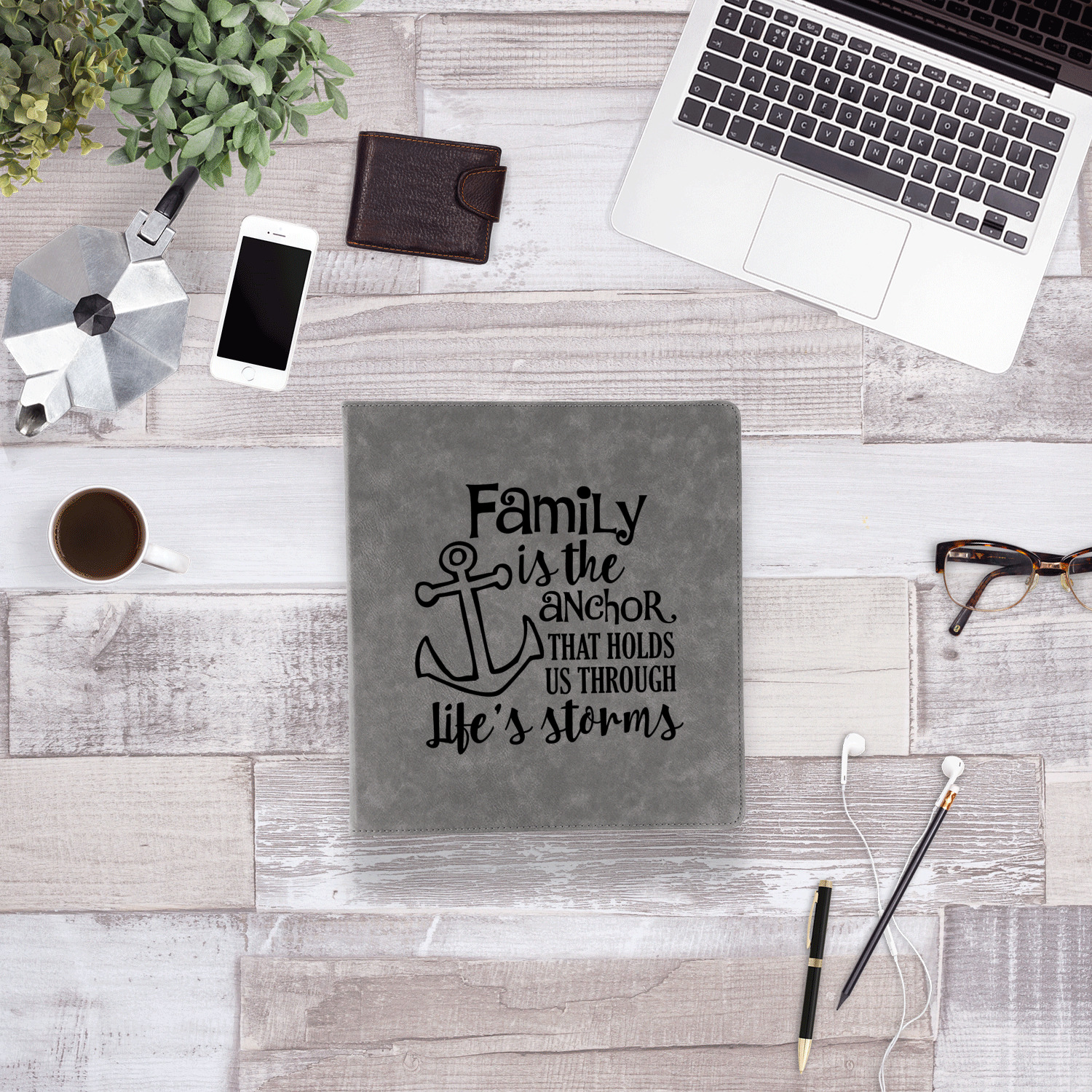 This design is made from a beautiful quote that says "Family is the anchor that holds us through life's storms." It also features an anchor illustration. This beautiful quote looks great on any of our laser engraved products from tumblers to passport holders.