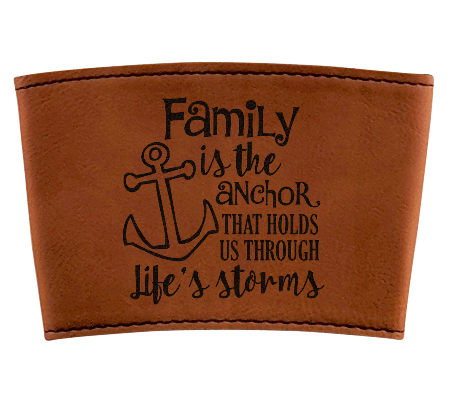 This design is made from a beautiful quote that says "Family is the anchor that holds us through life's storms." It also features an anchor illustration. This beautiful quote looks great on any of our laser engraved products from tumblers to passport holders.