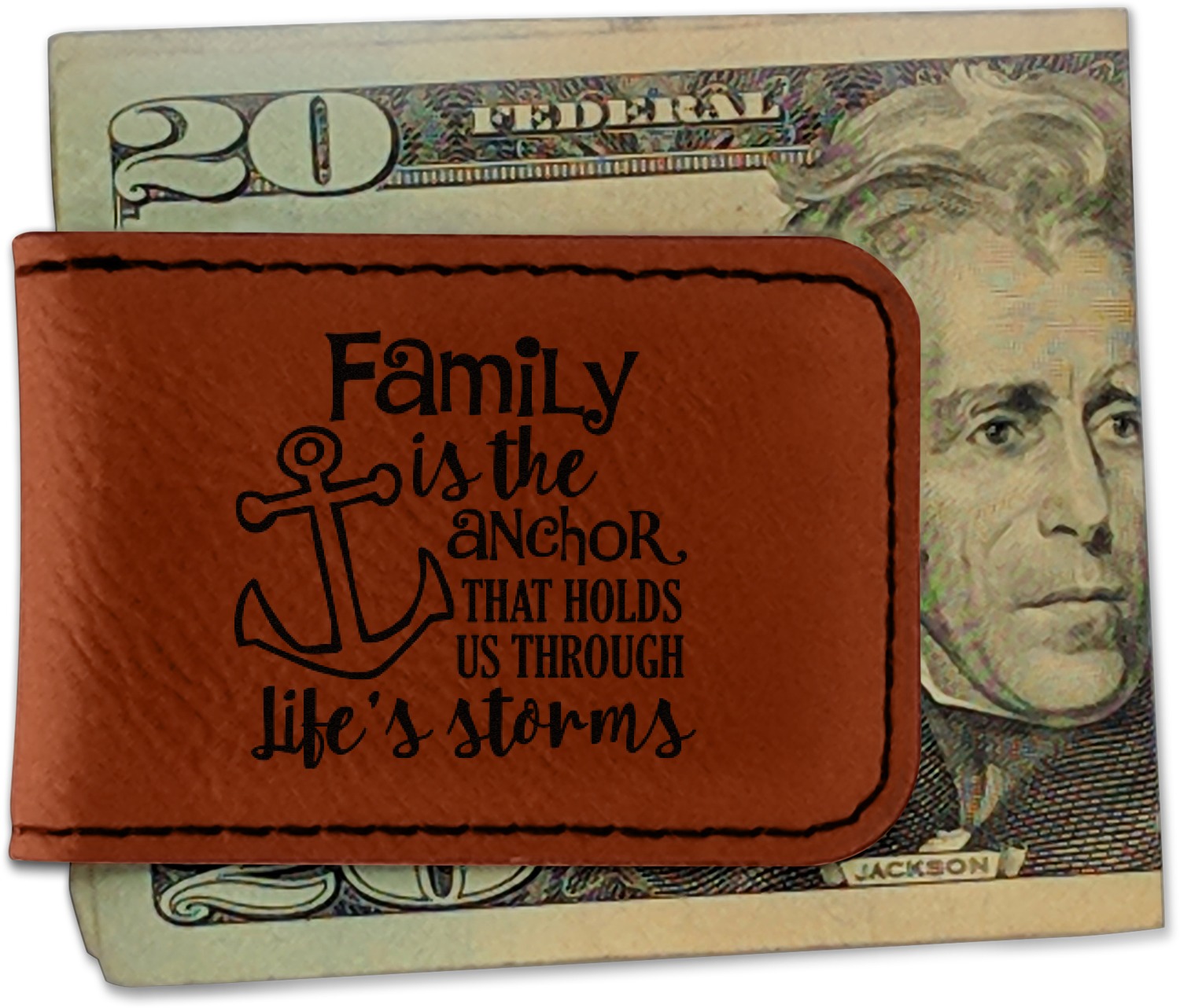 This design is made from a beautiful quote that says "Family is the anchor that holds us through life's storms." It also features an anchor illustration. This beautiful quote looks great on any of our laser engraved products from tumblers to passport holders.