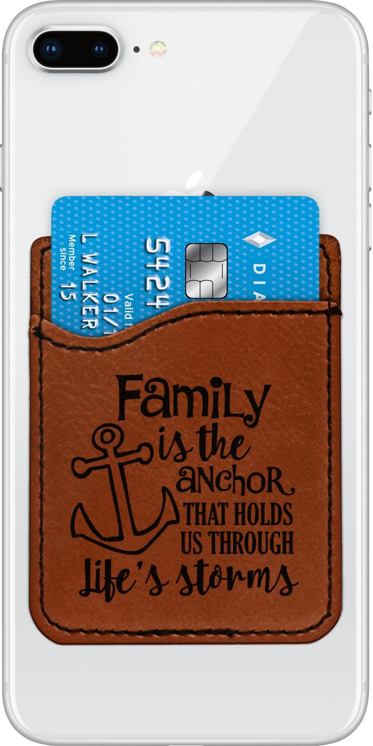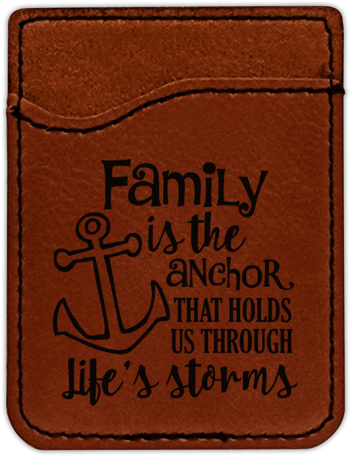 This design is made from a beautiful quote that says "Family is the anchor that holds us through life's storms." It also features an anchor illustration. This beautiful quote looks great on any of our laser engraved products from tumblers to passport holders.