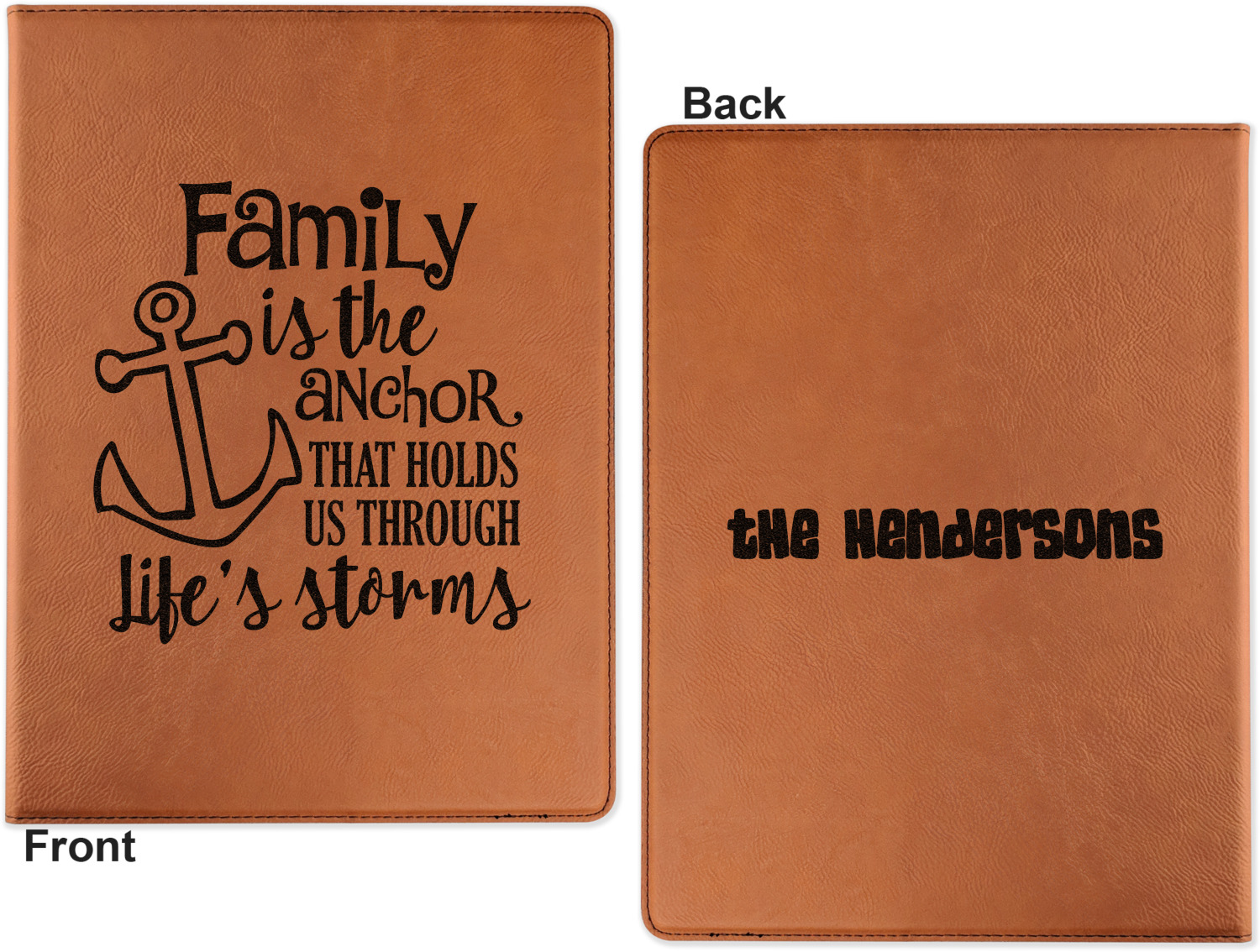 This design is made from a beautiful quote that says "Family is the anchor that holds us through life's storms." It also features an anchor illustration. This beautiful quote looks great on any of our laser engraved products from tumblers to passport holders.