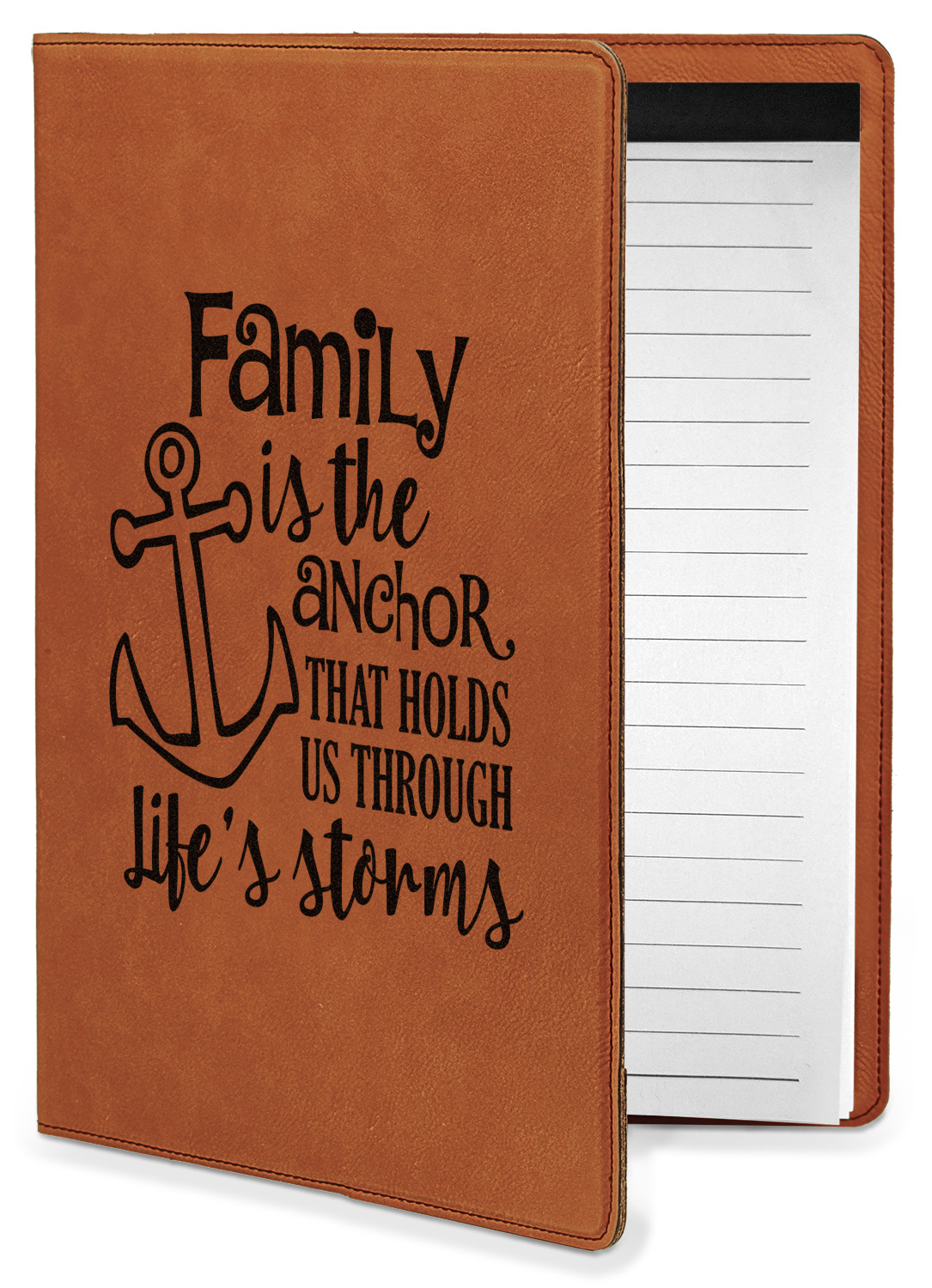This design is made from a beautiful quote that says "Family is the anchor that holds us through life's storms." It also features an anchor illustration. This beautiful quote looks great on any of our laser engraved products from tumblers to passport holders.