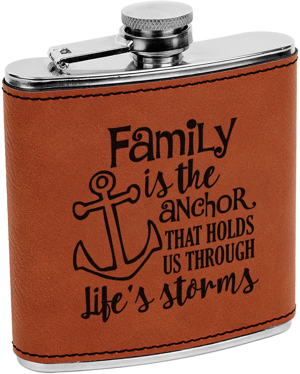 This design is made from a beautiful quote that says "Family is the anchor that holds us through life's storms." It also features an anchor illustration. This beautiful quote looks great on any of our laser engraved products from tumblers to passport holders.