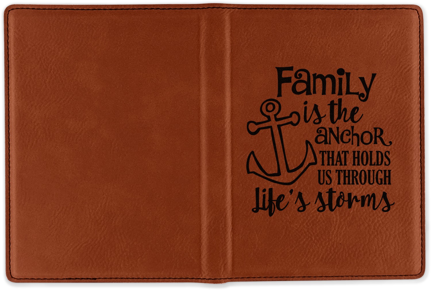 This design is made from a beautiful quote that says "Family is the anchor that holds us through life's storms." It also features an anchor illustration. This beautiful quote looks great on any of our laser engraved products from tumblers to passport holders.