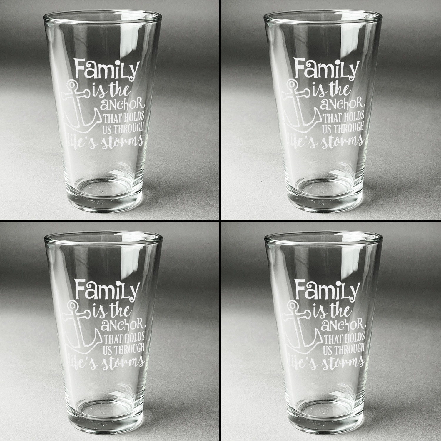 Available in a single glass or a set of 4 - each glass will be custom engraved with your design. Each glass holds 16 oz and measure 5.75"H x 3.5"W.