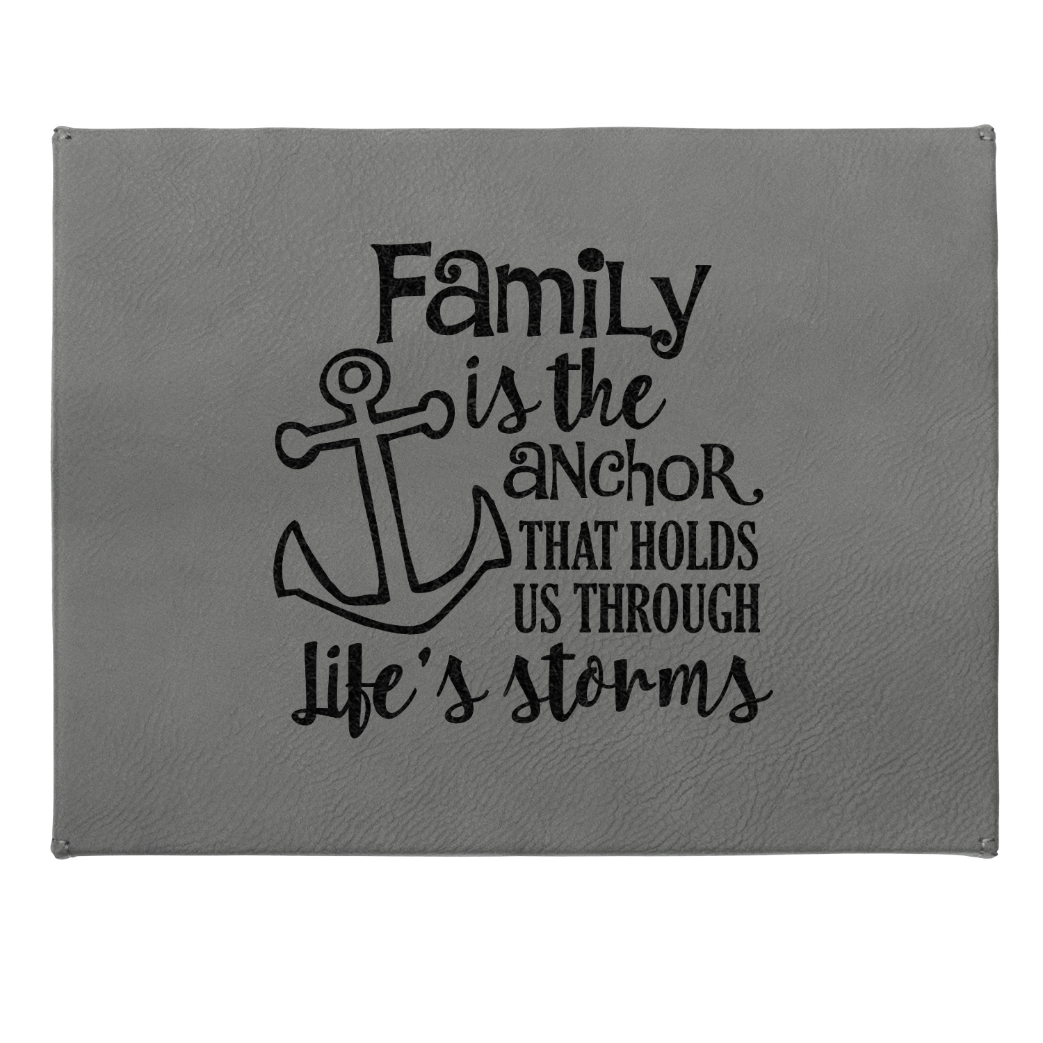 This design is made from a beautiful quote that says "Family is the anchor that holds us through life's storms." It also features an anchor illustration. This beautiful quote looks great on any of our laser engraved products from tumblers to passport holders.