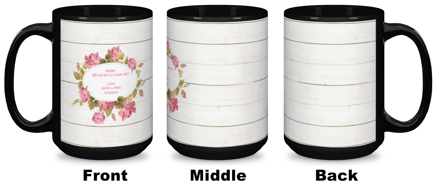 Our ceramic mugs have your design or photo printed along the surface with a gloss finish. The ceramic material of our mugs is dishwasher and microwave safe so you can reheat your tea or coffee if needed! We offer two different base colors with multiple mug sizes. The white ceramic mugs come in three size options - 11 oz., 15 oz., and 20 oz. Our black ceramic mugs are sold in either 11 oz. or 15 oz. sizes.