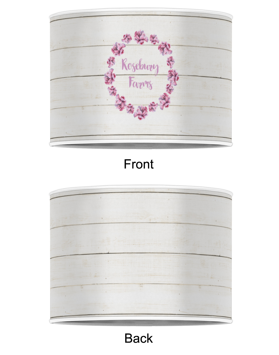 The main design has a background of weathered wooden planks. A beautiful light pink flower frame is used as the focal point of this design. The pink color of the frame and the personalization inside is the perfect contrast to the light colored wood.
