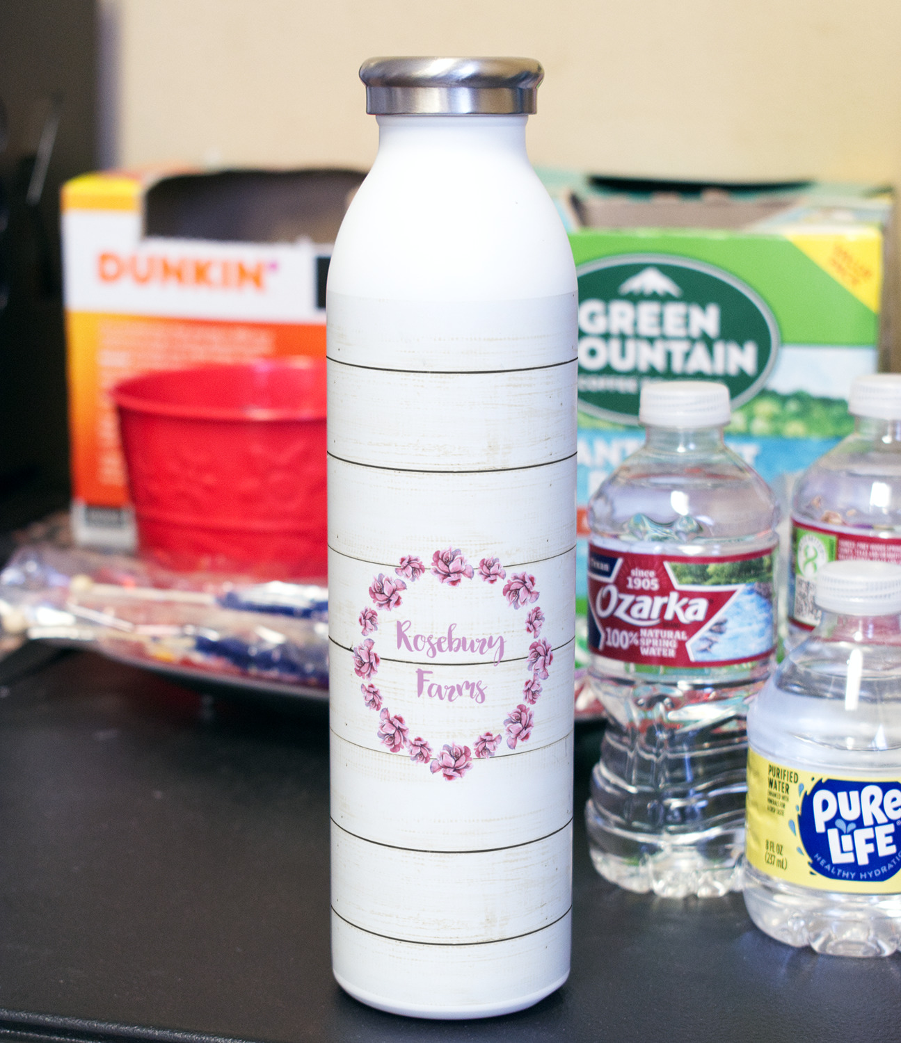 Design your bottle and we will print your design with a UV stable ink so it will not fade over time. After printing the design we apply a clear coat over the print to ensure its durability will stand up to rough every day use.