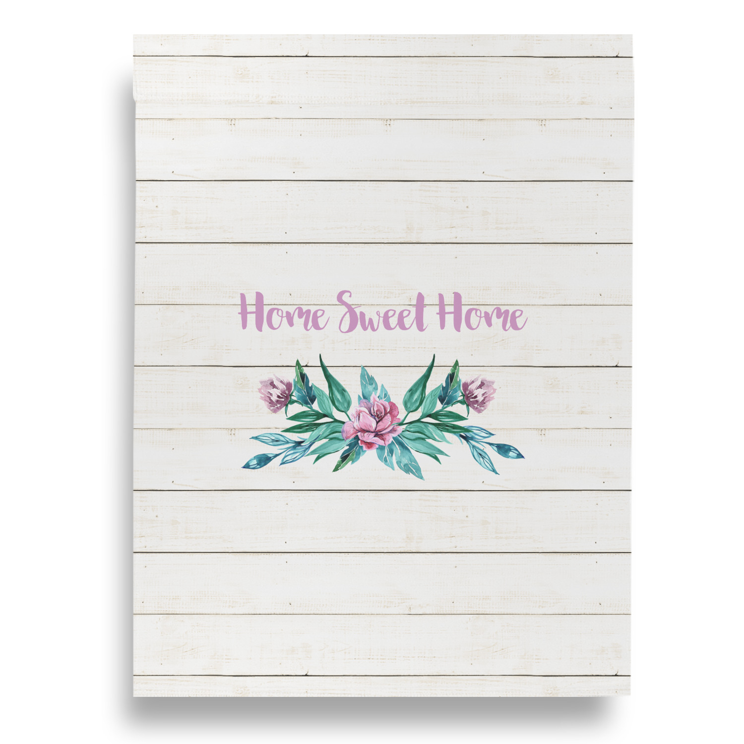 The main design has a background of weathered wooden planks. A beautiful light pink flower frame is used as the focal point of this design. The pink color of the frame and the personalization inside is the perfect contrast to the light colored wood.