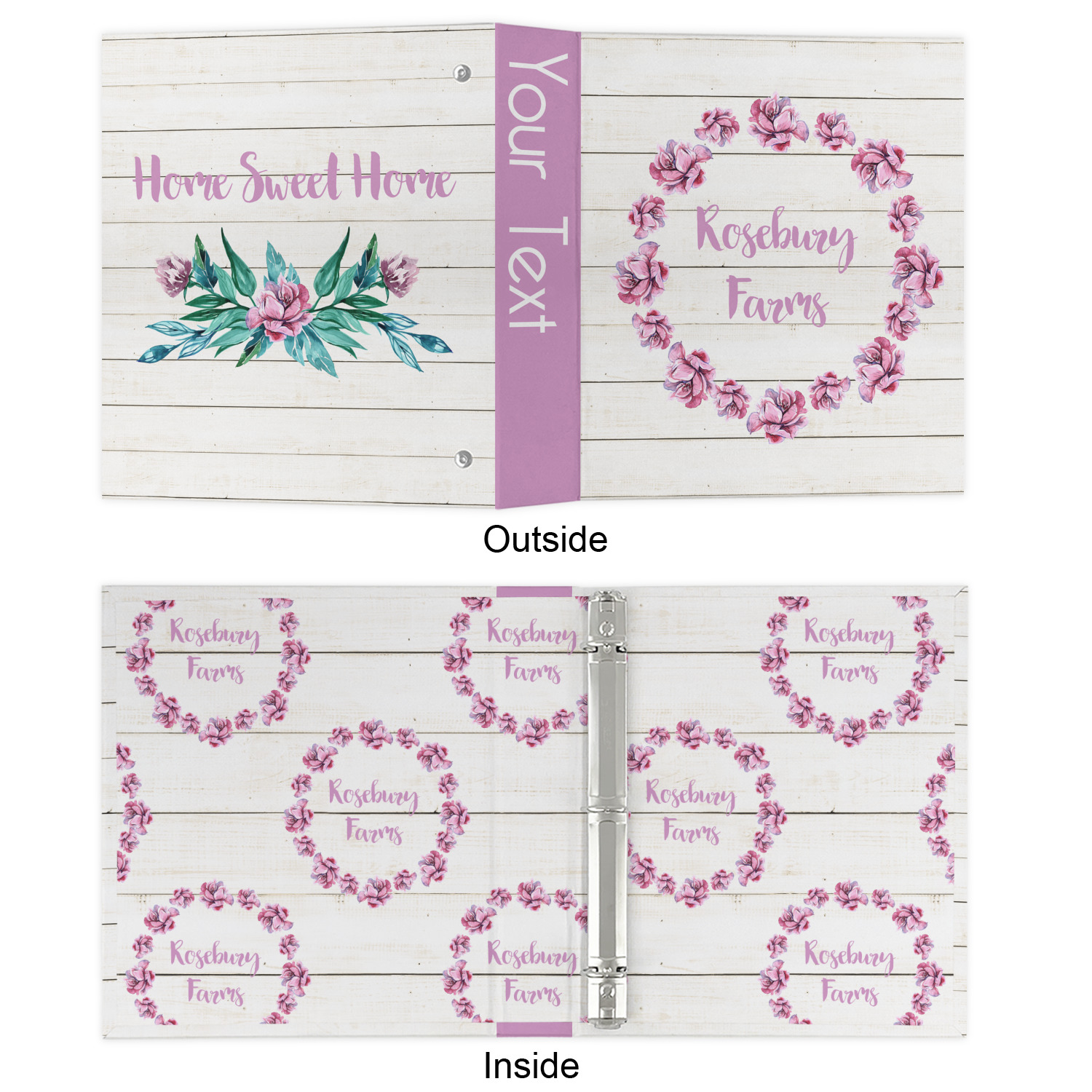 Made from a sturdy cardboard base with a full high quality canvas textured vinyl wrap with the design of your choice. Unlike our standard 3-ring binder with the full wrap design your artwork wraps from the front and back and into the inside of the binder.