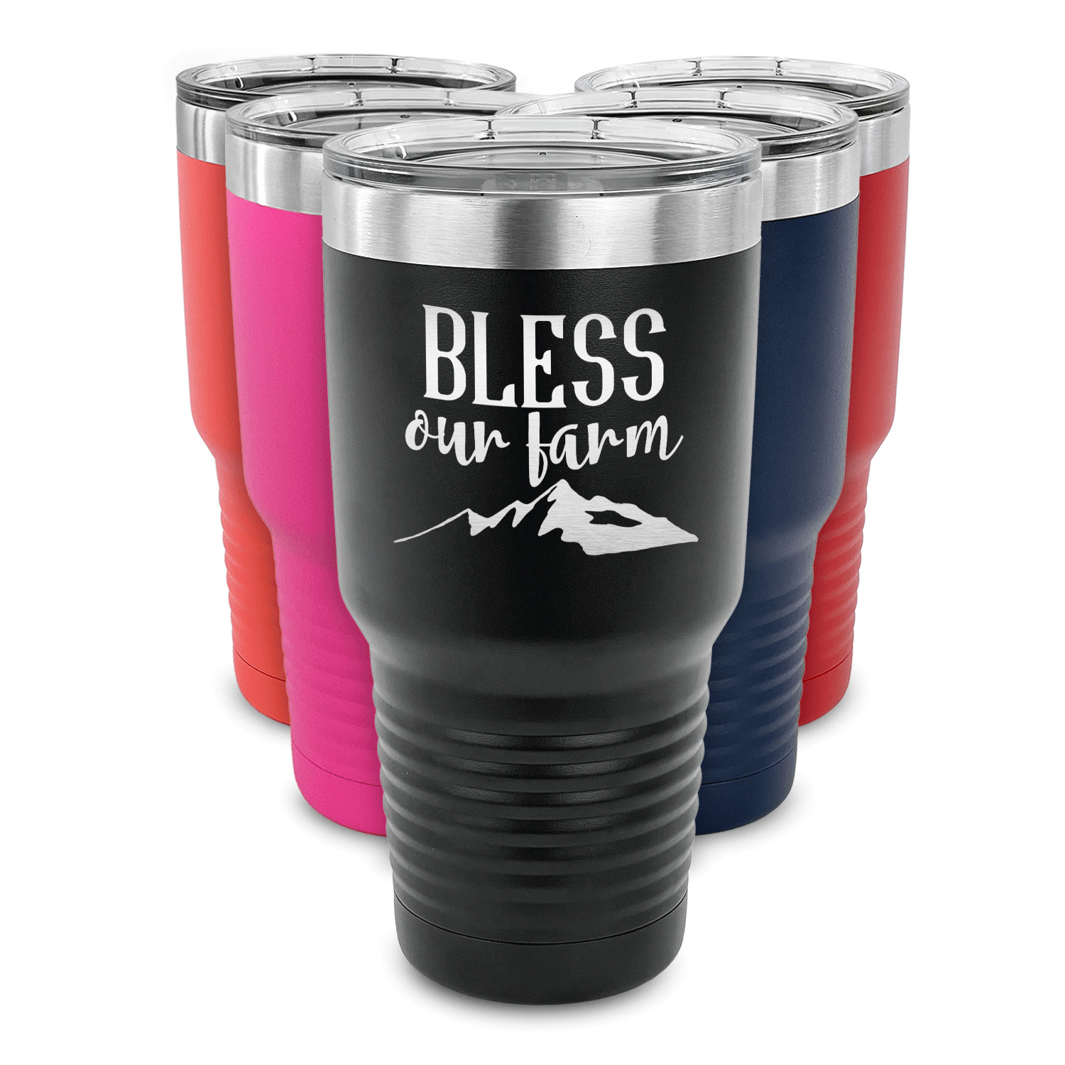 With the 5 colors - Black, Navy, Red, Pink and Coral, you are sure to find a cup to fit your personality. You can chose to engrave on the front or the front and back of the cup. Use our design studio to design your own cup and we laser engrave it for you.