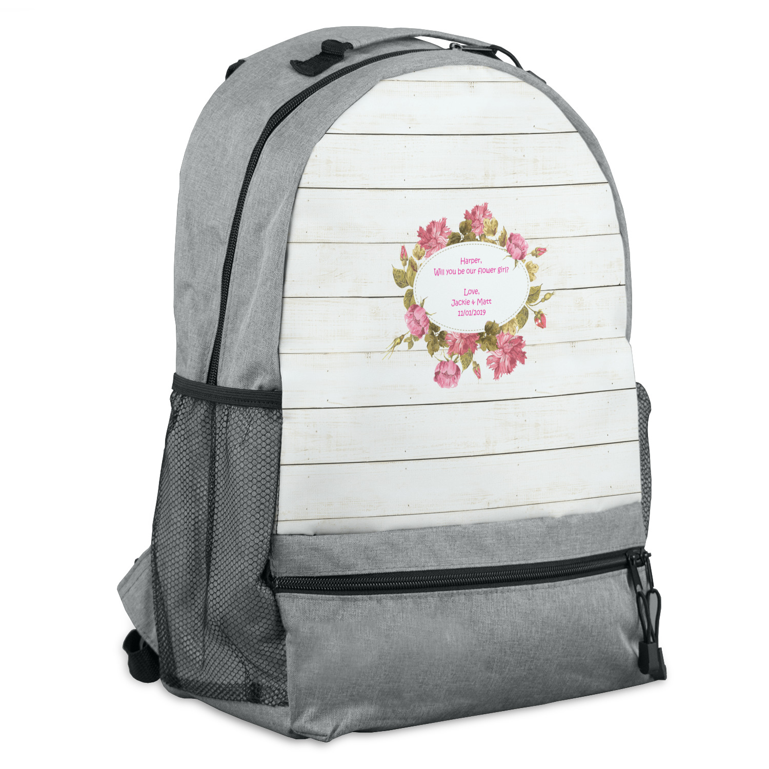 The coordinating design has the same wooden background with a flower illustration as the main graphic. This design is the perfect feminine touch to any accessory.