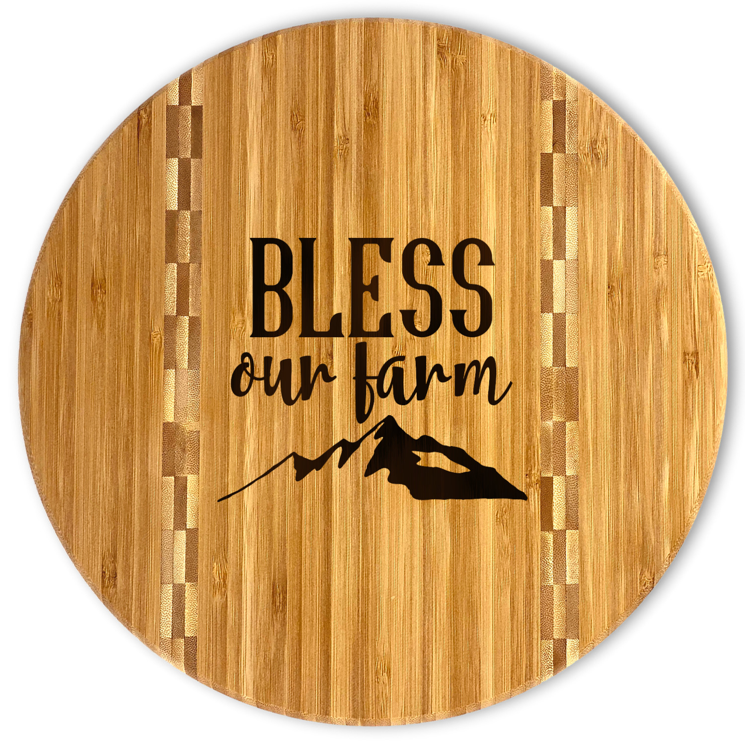 If you are looking for a nice well made bamboo cutting board look no further. This cutting board has a nice round design with a butcher block style inlay.