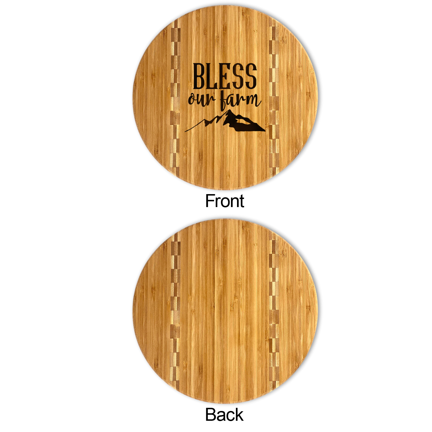 Designed for looks on the side with your customization and use on the other side to keep your personalization looking great for years to come. If you need to maintain your cutting board simply rub some food safe oil on it and polish it up.