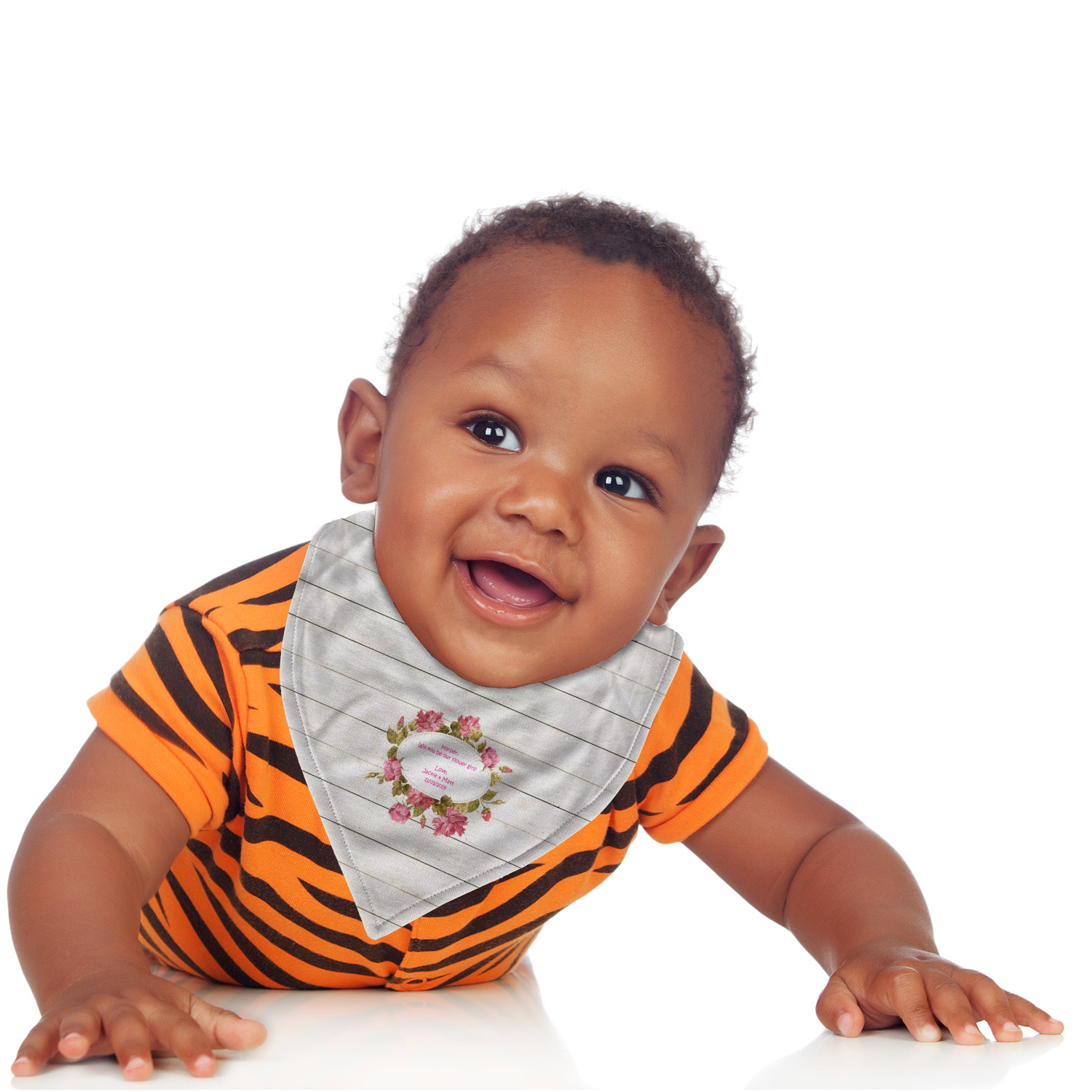 Combine this toddler bib with a variety of our other baby products, such as burp cloths, baby blankets, and baby onesies, to make a delightful baby shower gift! Or, browse from our selection of products in our Baby and Toddler section for more gifts for your own child! Customize some kid's cutlery, snack containers, or a sippy cup to make mealtime more enjoyable!