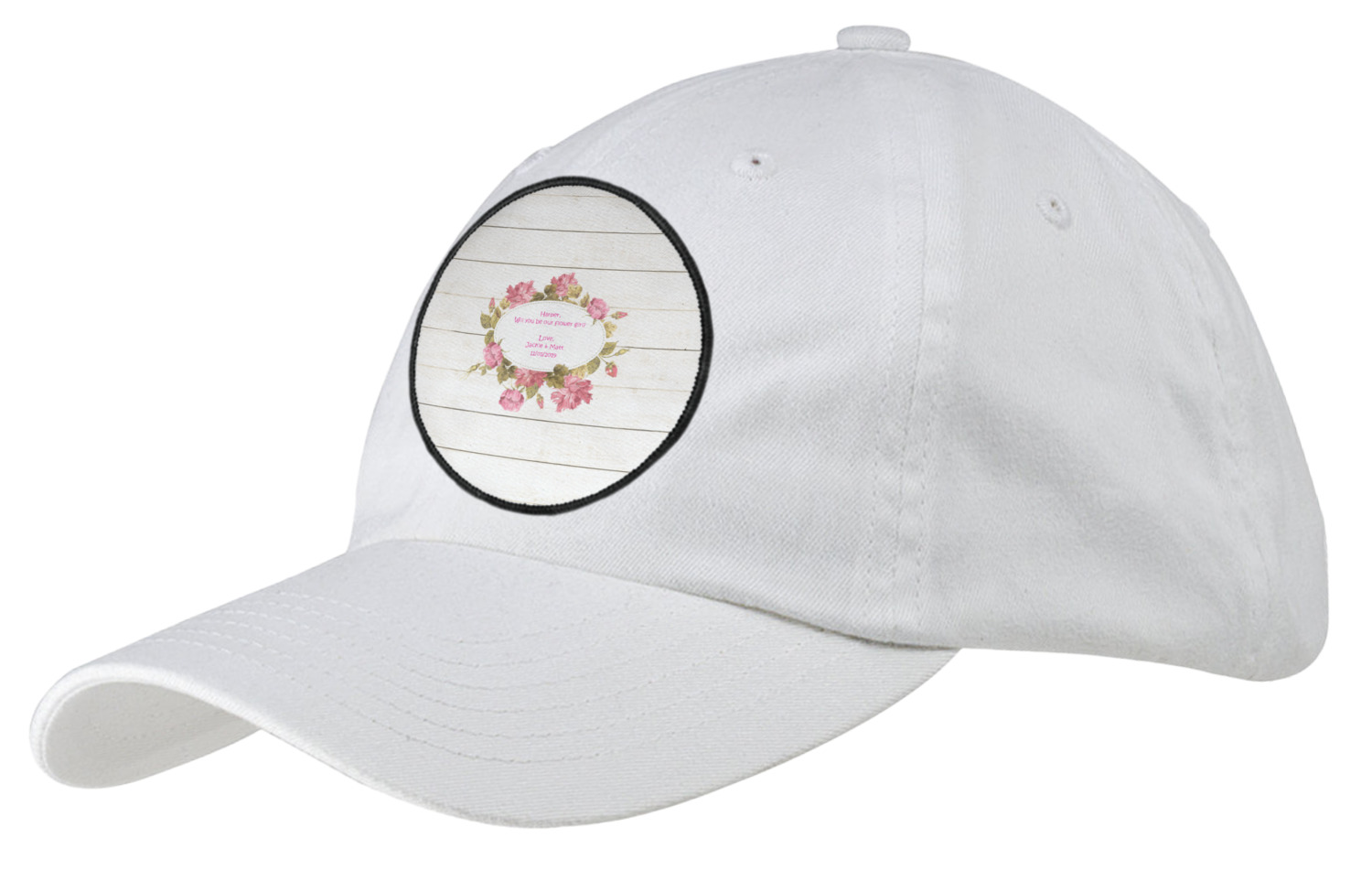 The main design has a background of weathered wooden planks. A beautiful light pink flower frame is used as the focal point of this design. The pink color of the frame and the personalization inside is the perfect contrast to the light colored wood.