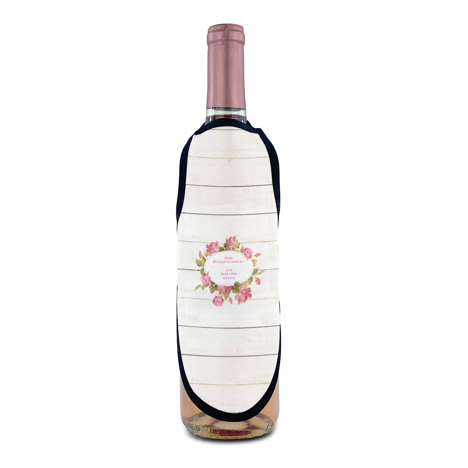 The main design has a background of weathered wooden planks. A beautiful light pink flower frame is used as the focal point of this design. The pink color of the frame and the personalization inside is the perfect contrast to the light colored wood.