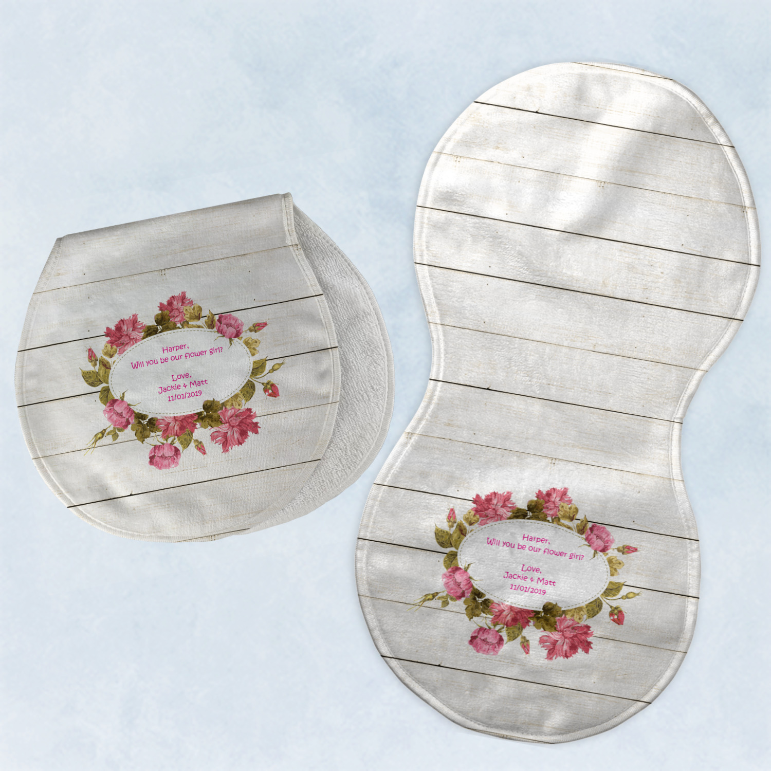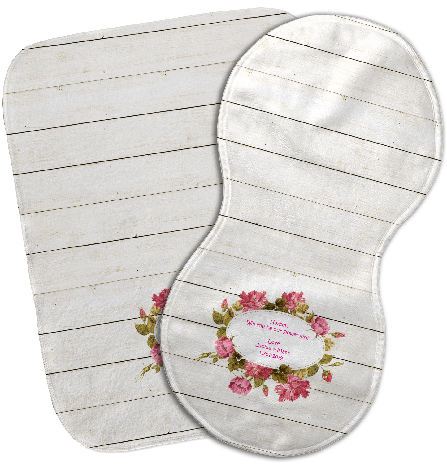 Choose your baby burp cloth from our two styles - Fleece (rectangular) or Microfiber Velour (peanut shape). The lightweight and absorbent design makes each burp cloth multipurpose; use them as a burp pad, a lap pad, a changing table, or a spare cloth to clean up any baby mess. Your customization is displayed across the front with baby-safe ink to ensure extra comfort with a white backing.