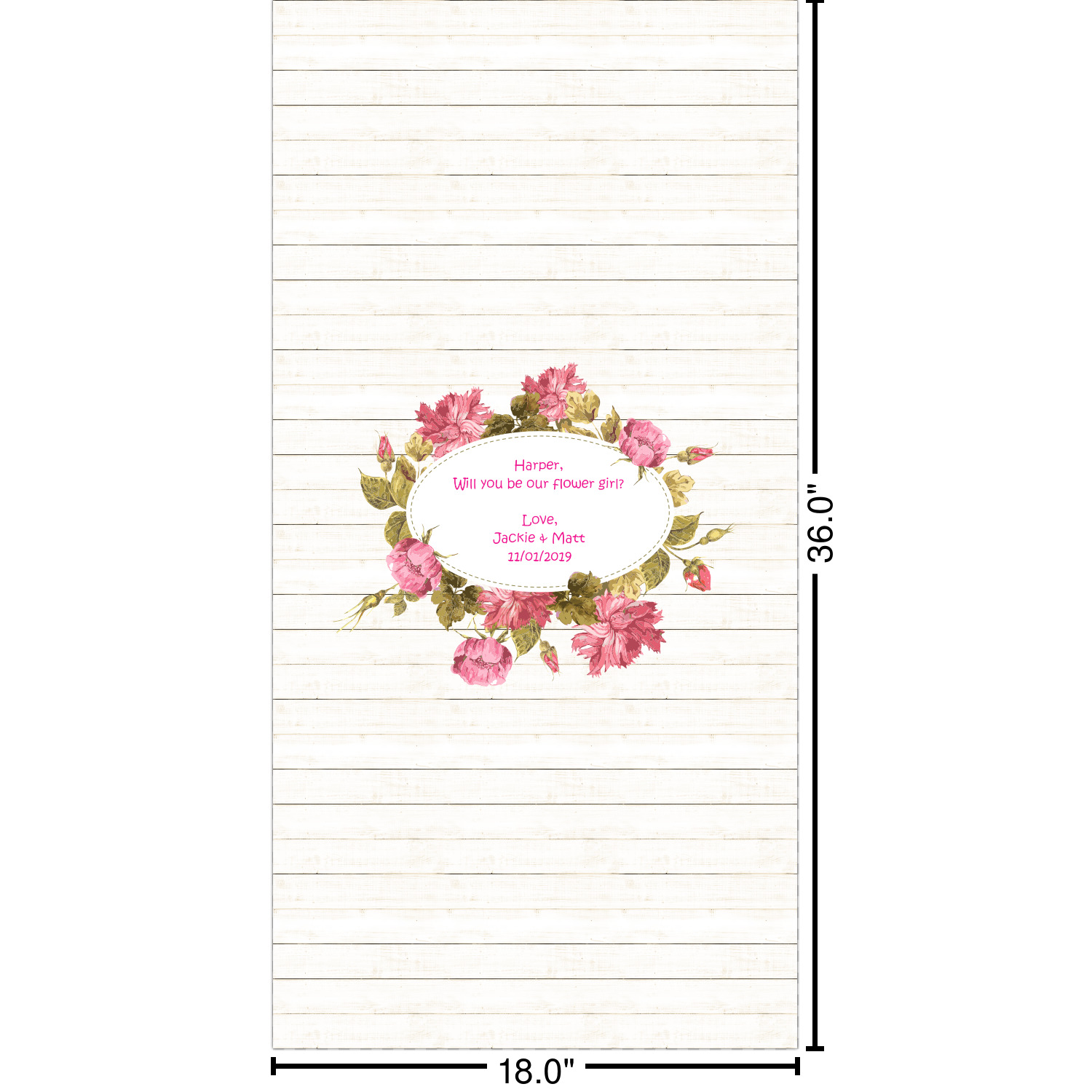 The main design has a background of weathered wooden planks. A beautiful light pink flower frame is used as the focal point of this design. The pink color of the frame and the personalization inside is the perfect contrast to the light colored wood.