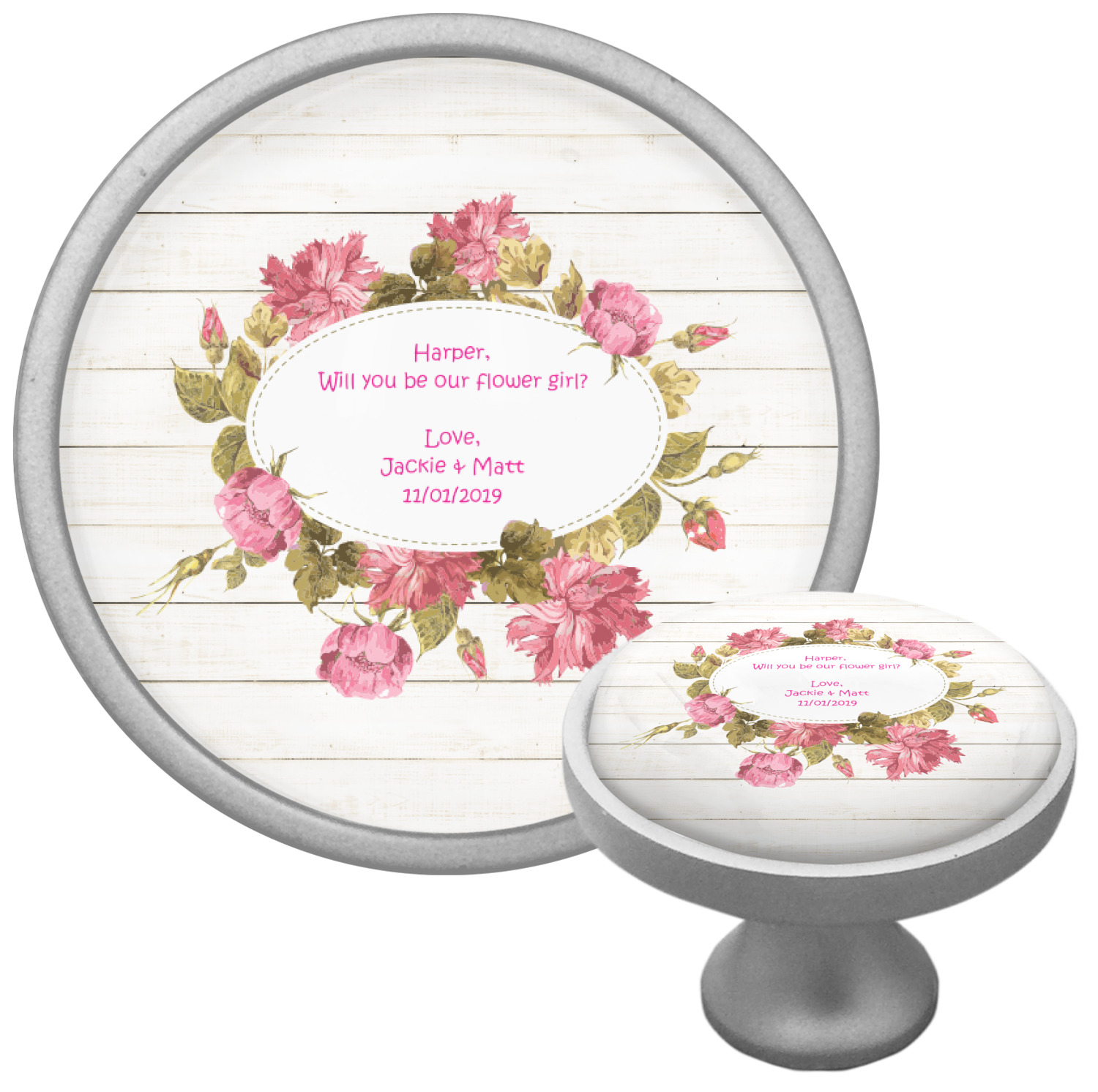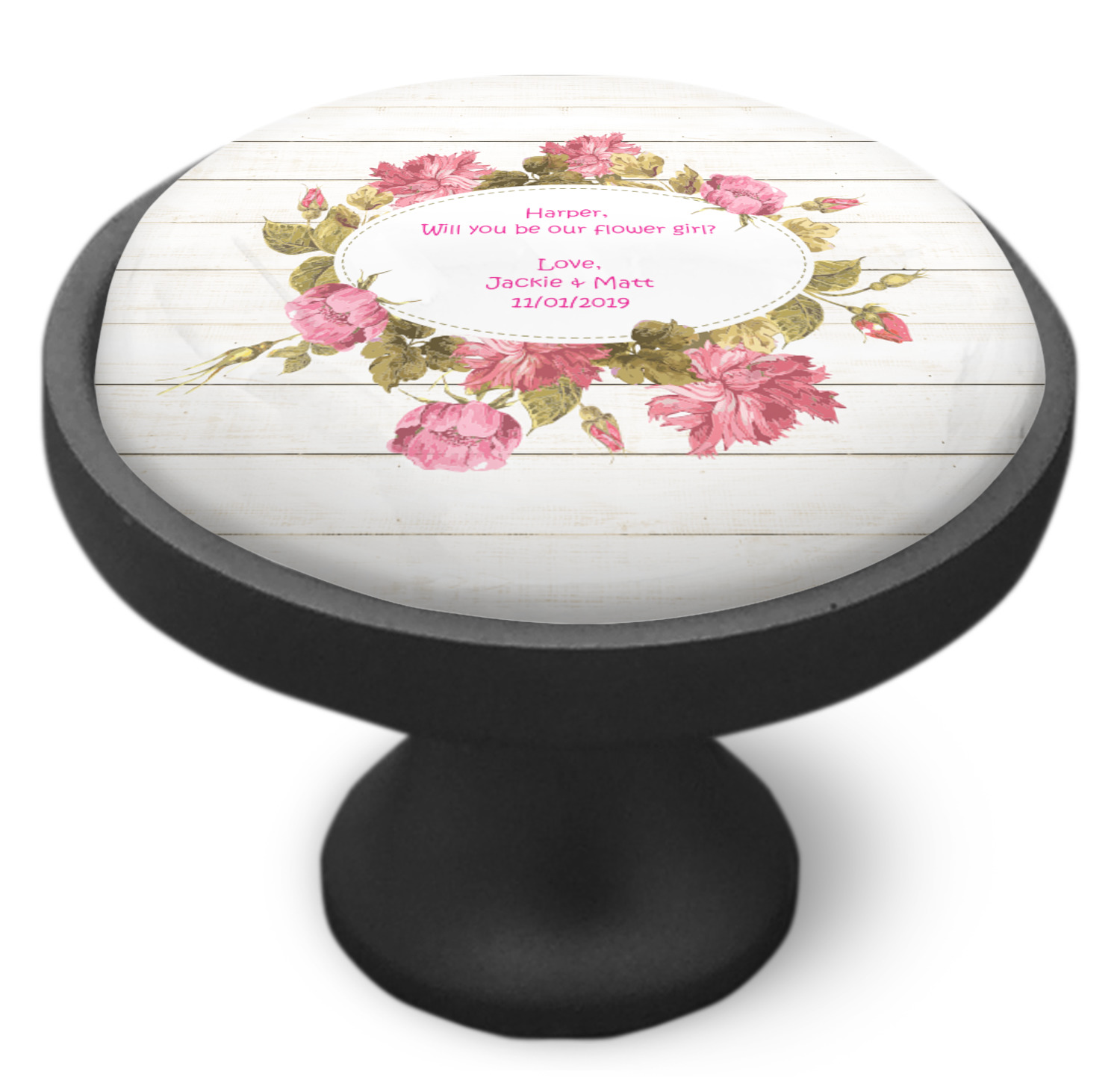 We sell these cabinet pulls in two different colors to better match your room's color scheme. We offer an oil-rubbed bronze base that is black in color, and a satin nickel option, which has a silver color. Your design is displayed across a high gloss vinyl insert that is placed on top of these cabinet handles. We then place a 1 inch thick glass cabochon atop the design, which seals the cabinet knob and makes the colors of your customization stand out. These custom cabinet knobs are approximately 1.3 inches in diameter. Your purchase includes a 1 inch screw that can be used to mount the knob to any cabinet in your home.