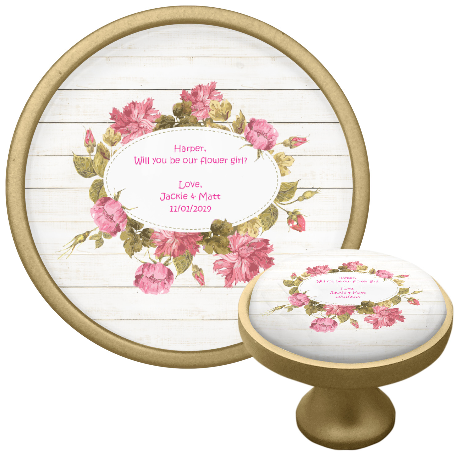 The coordinating design has the same wooden background with a flower illustration as the main graphic. This design is the perfect feminine touch to any accessory.