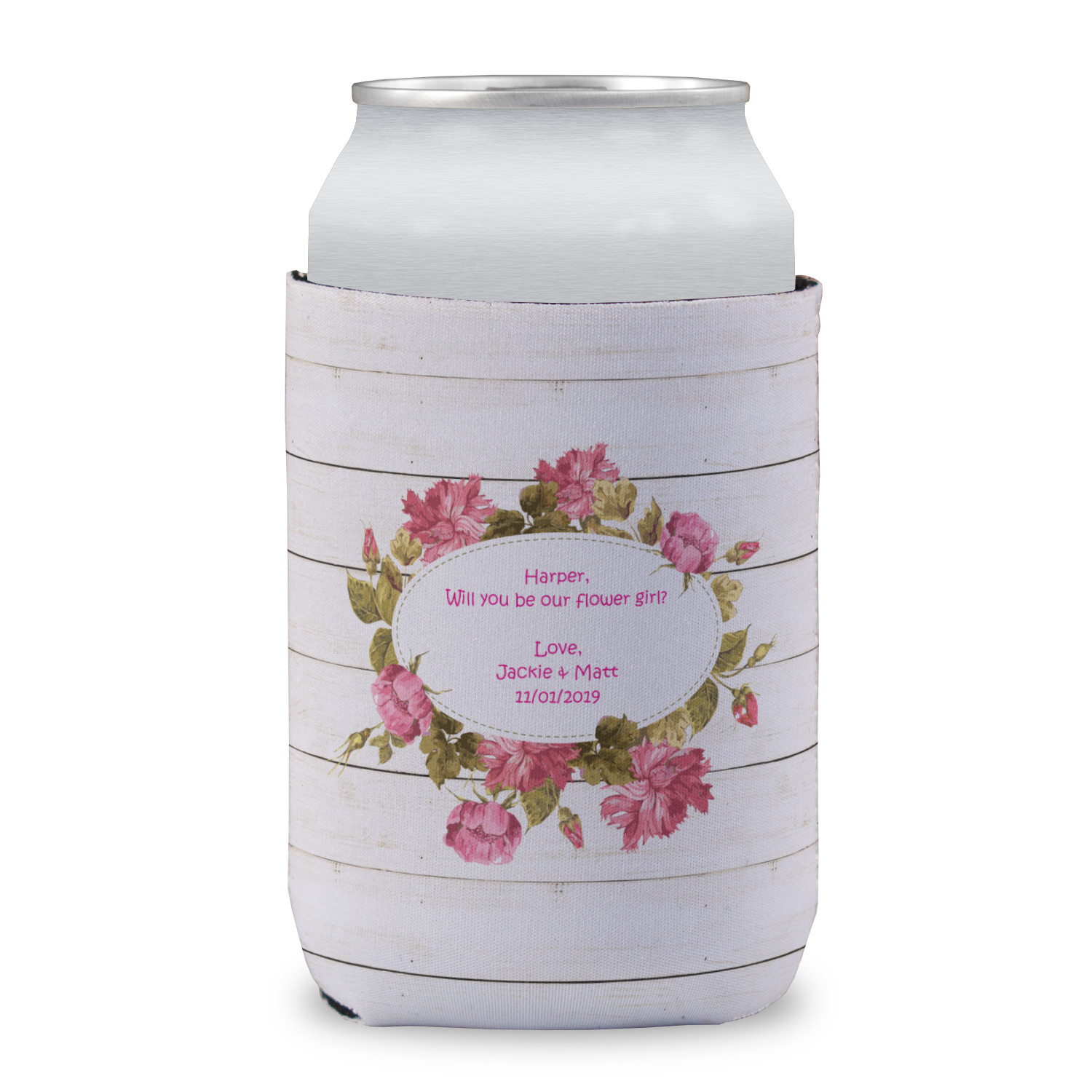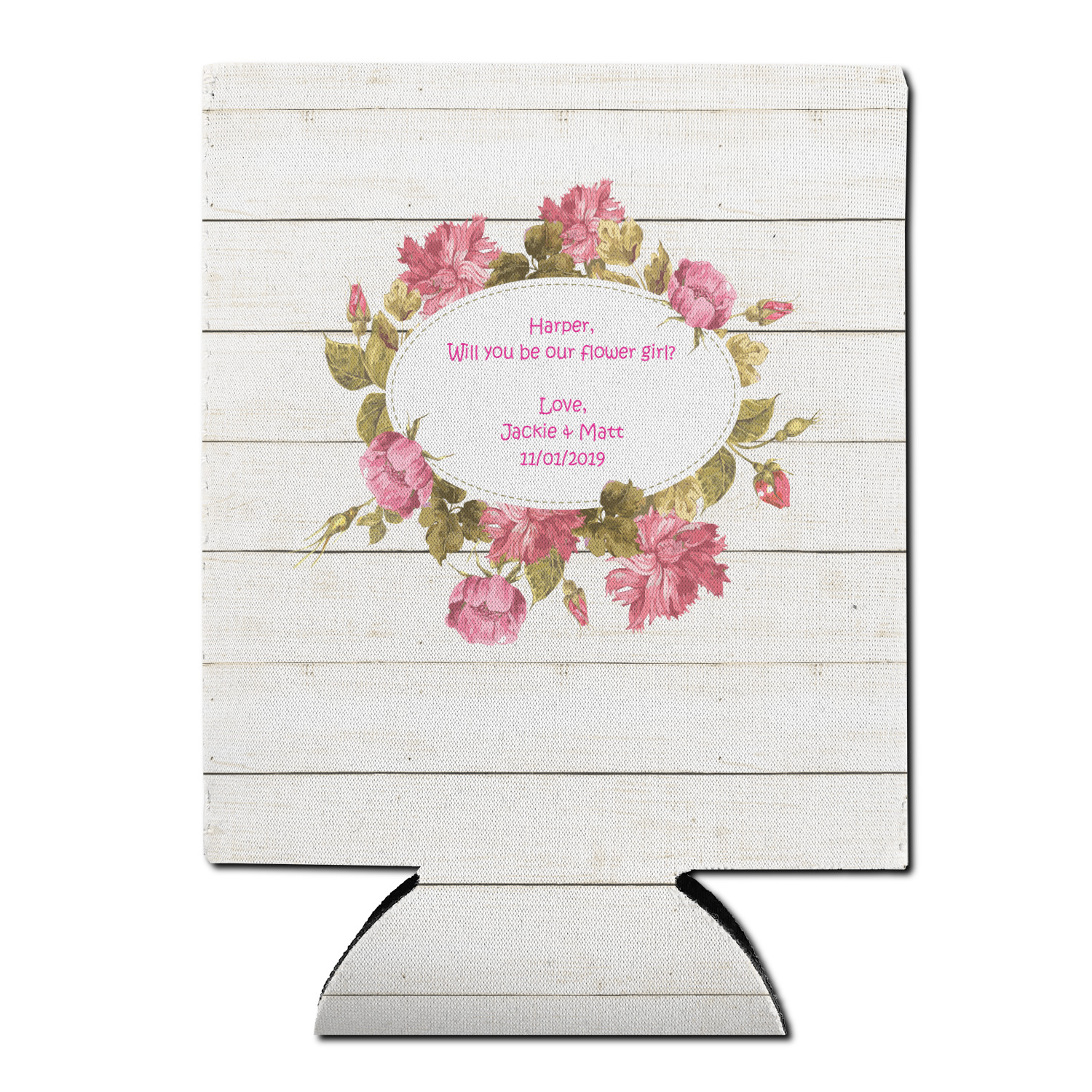 The main design has a background of weathered wooden planks. A beautiful light pink flower frame is used as the focal point of this design. The pink color of the frame and the personalization inside is the perfect contrast to the light colored wood.