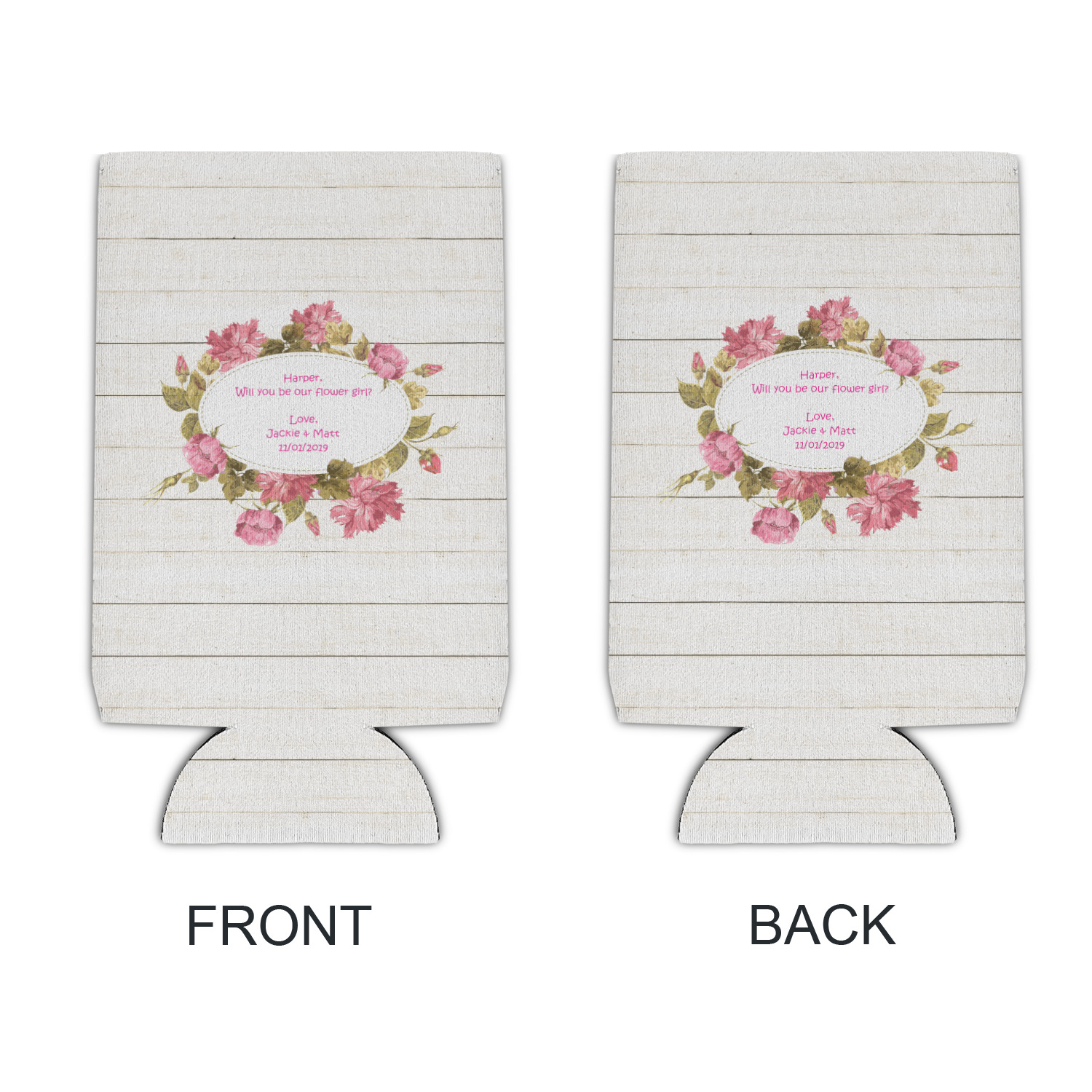 The main design has a background of weathered wooden planks. A beautiful light pink flower frame is used as the focal point of this design. The pink color of the frame and the personalization inside is the perfect contrast to the light colored wood.