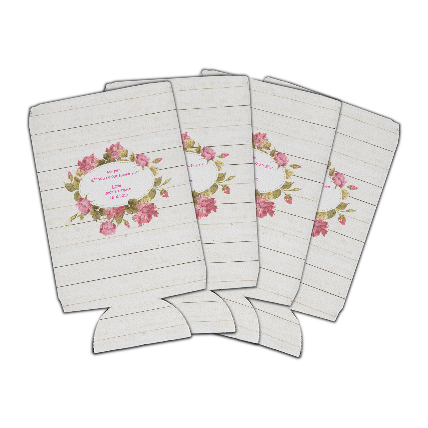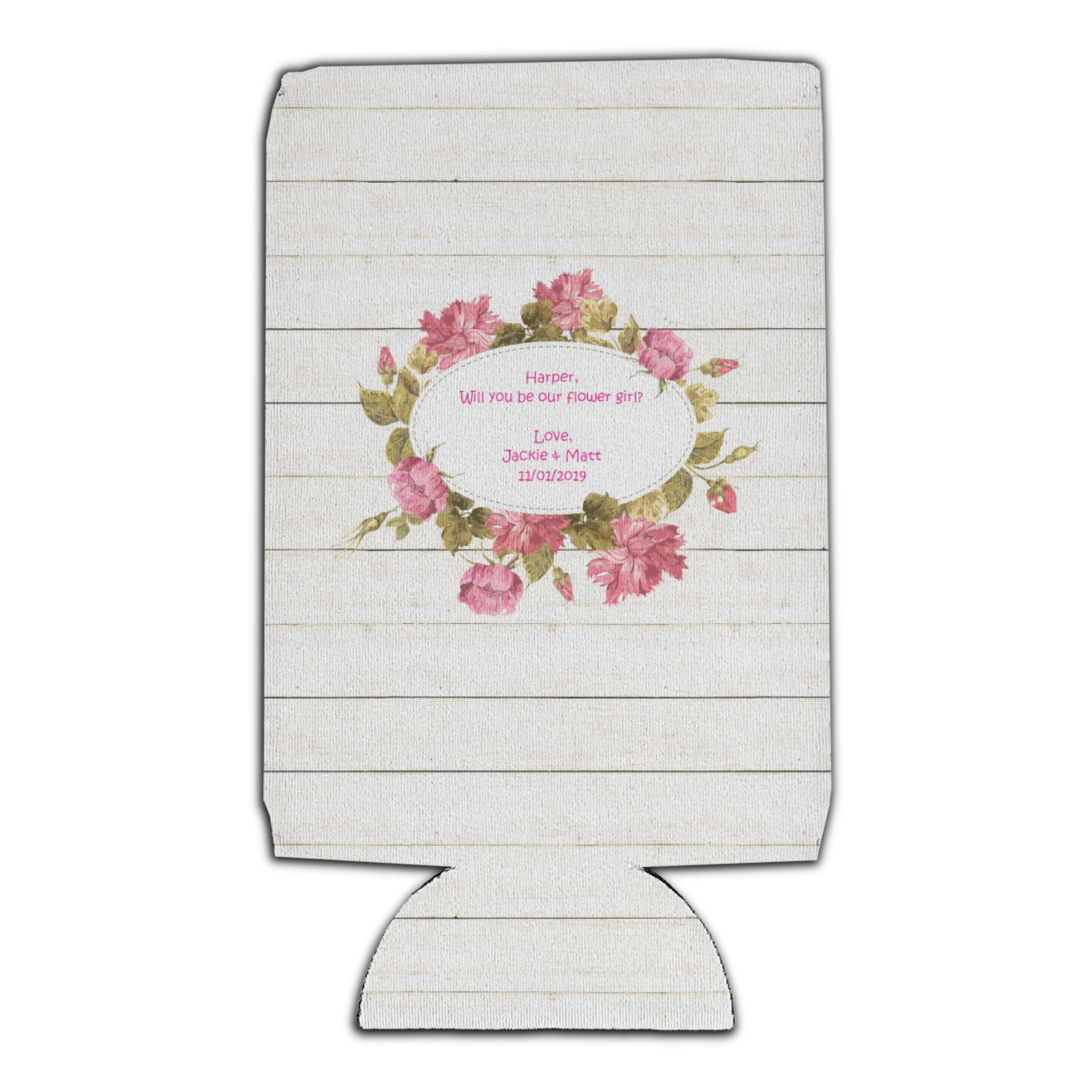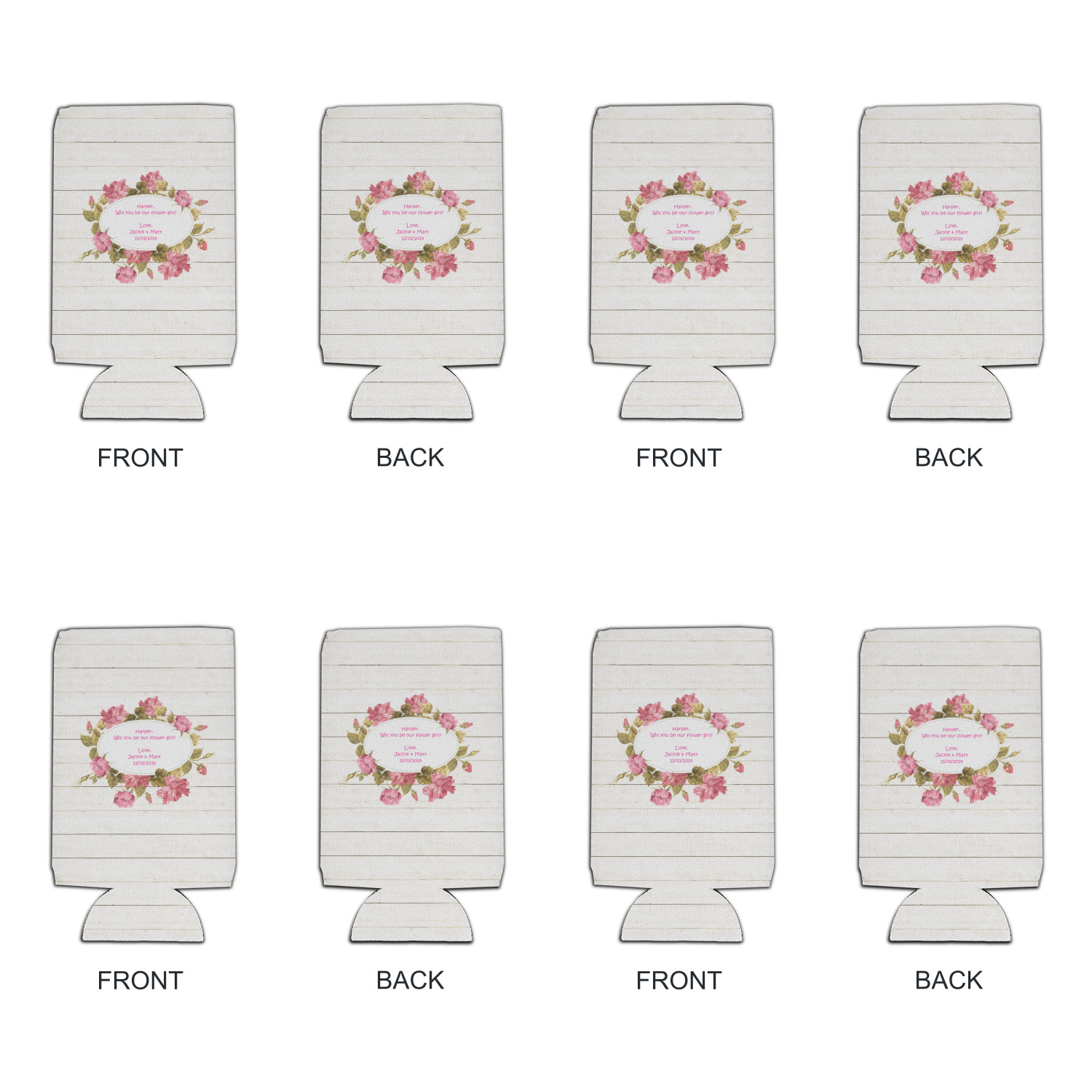 The main design has a background of weathered wooden planks. A beautiful light pink flower frame is used as the focal point of this design. The pink color of the frame and the personalization inside is the perfect contrast to the light colored wood.