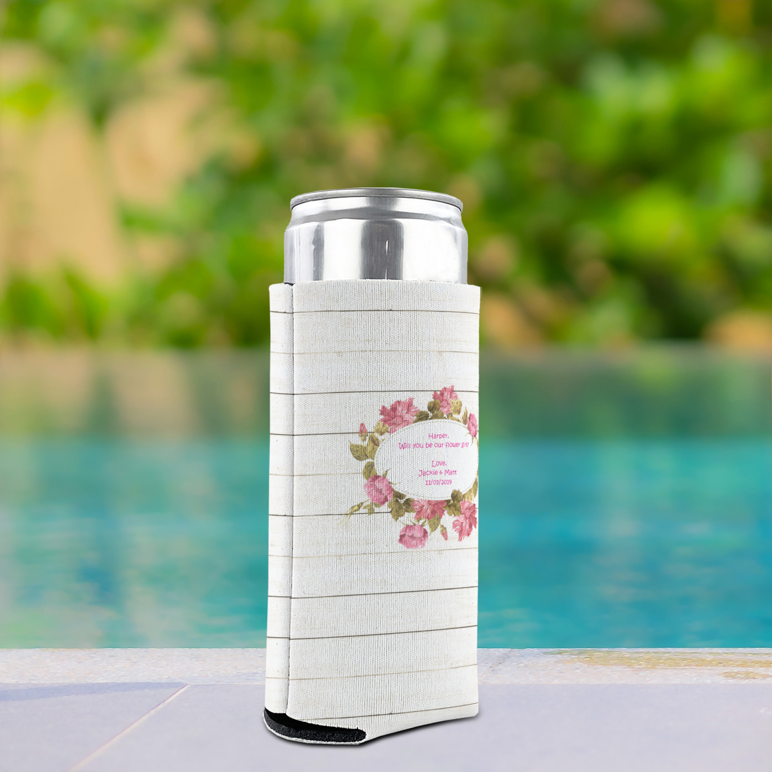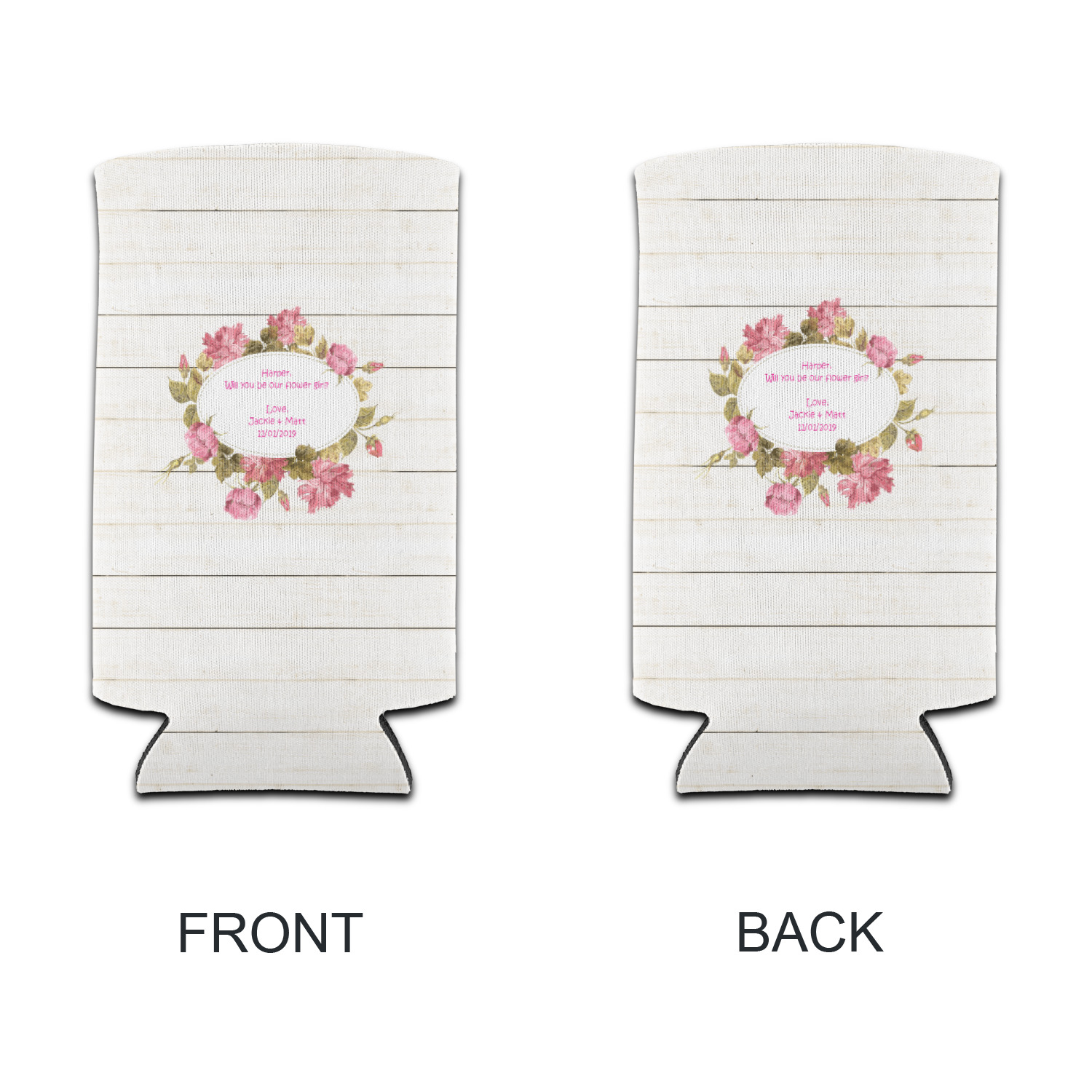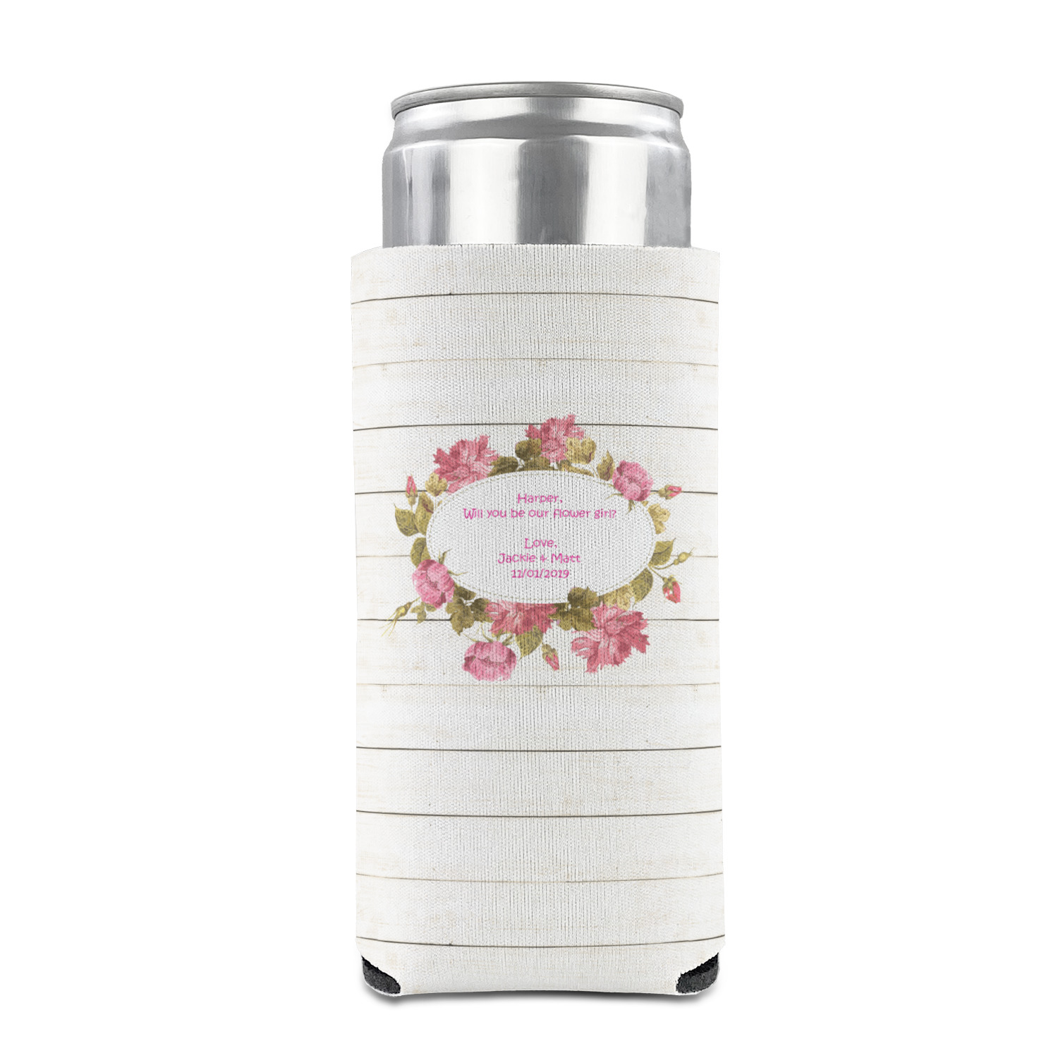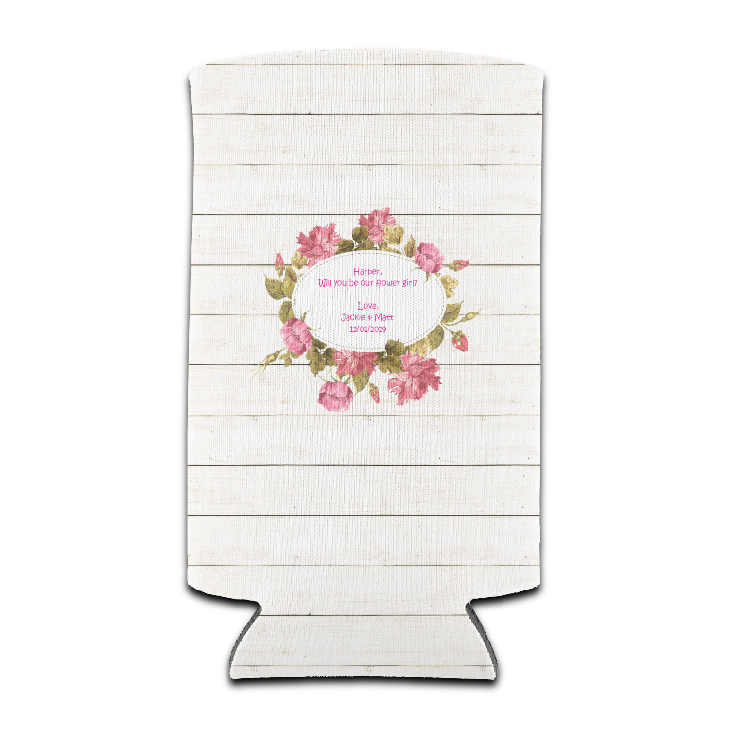 The main design has a background of weathered wooden planks. A beautiful light pink flower frame is used as the focal point of this design. The pink color of the frame and the personalization inside is the perfect contrast to the light colored wood.