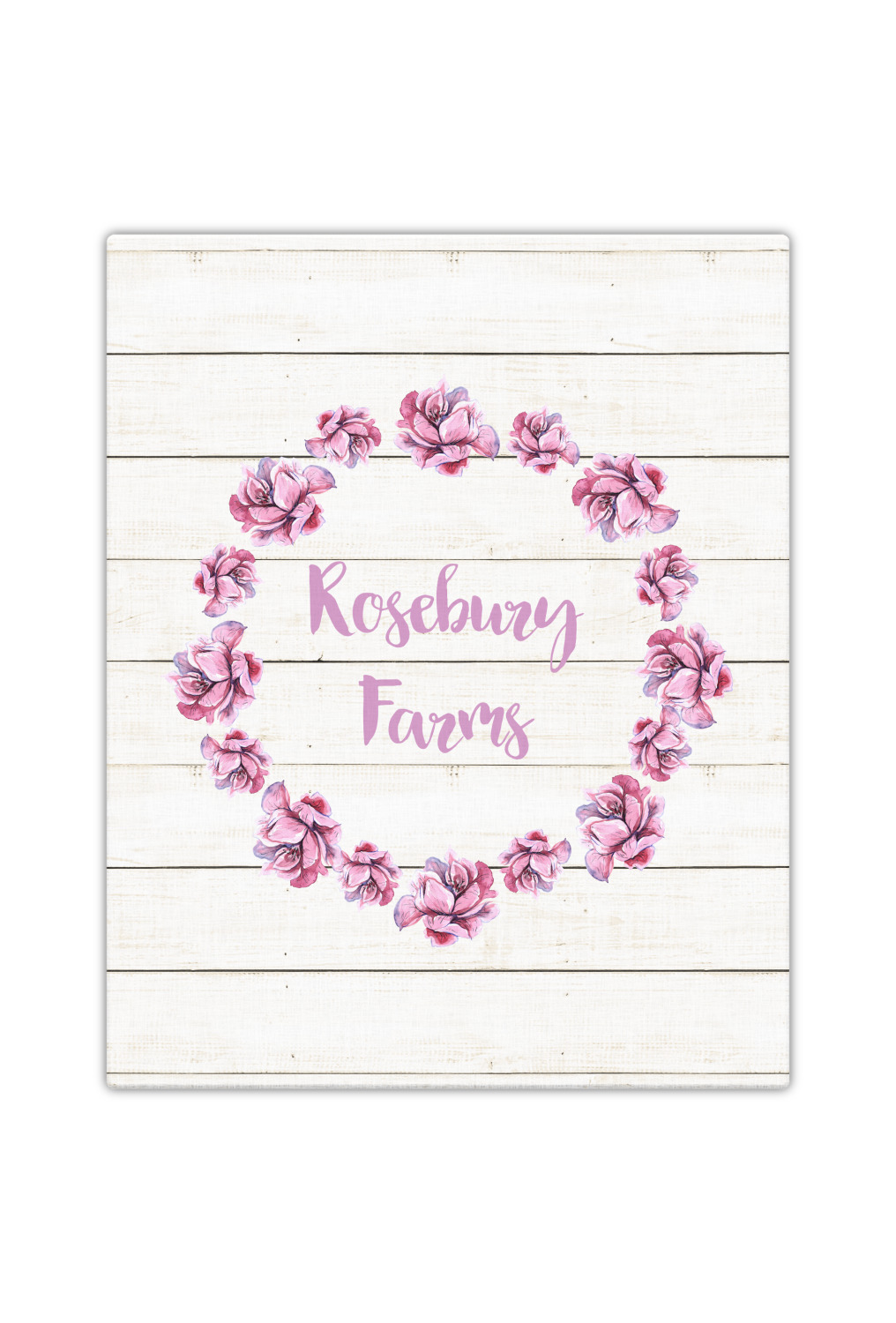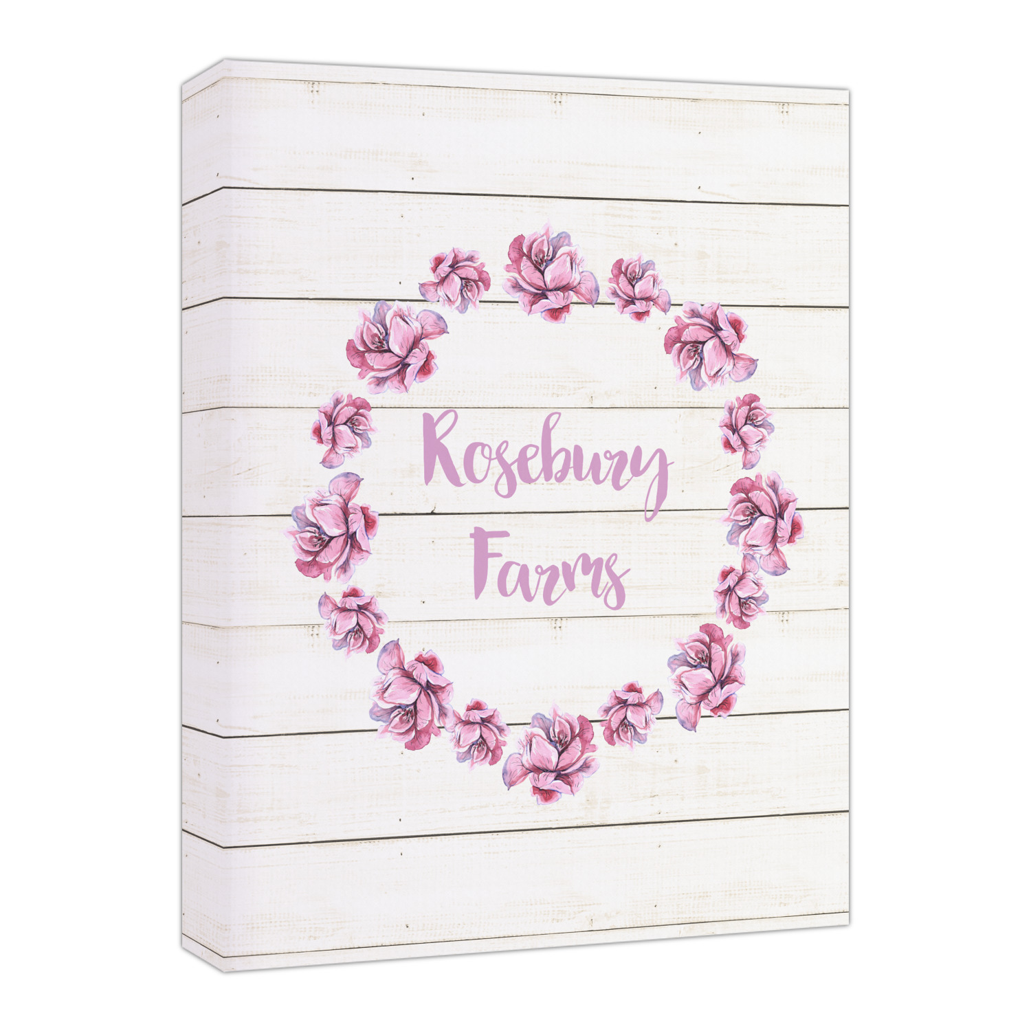 The main design has a background of weathered wooden planks. A beautiful light pink flower frame is used as the focal point of this design. The pink color of the frame and the personalization inside is the perfect contrast to the light colored wood.