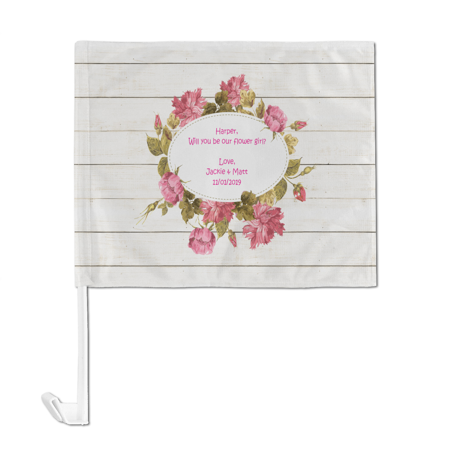 Our personalized flags are made from a durable, yet lightweight cloth that will proudly bear your logo or design of choice, while withstanding the outside elements. We have two size options - 8" x 11" and 11" x 15". Both come with a flag pole which includes a clip that secures the pole to the side window, whether it is rolled up or down. The flags are printed on both sides to display your design from all directions.