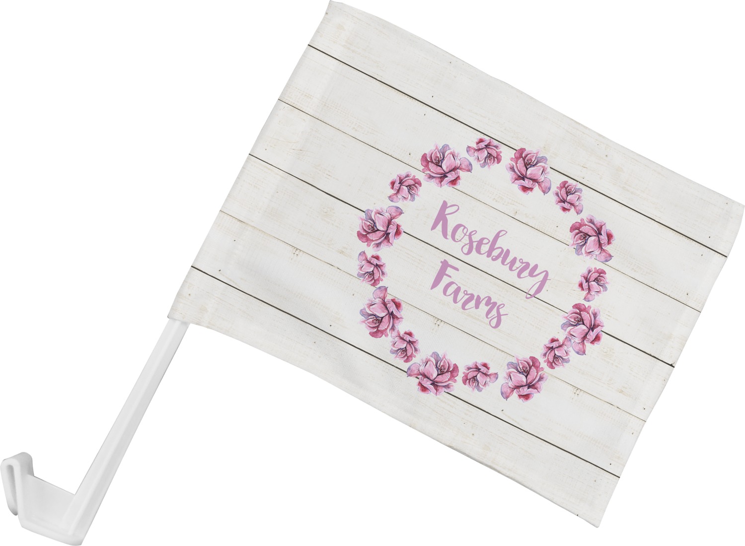 Our personalized flags are made from a durable, yet lightweight cloth that will proudly bear your logo or design of choice, while withstanding the outside elements. We have two size options - 8" x 11" and 11" x 15". Both come with a flag pole which includes a clip that secures the pole to the side window, whether it is rolled up or down. The flags are printed on both sides to display your design from all directions.