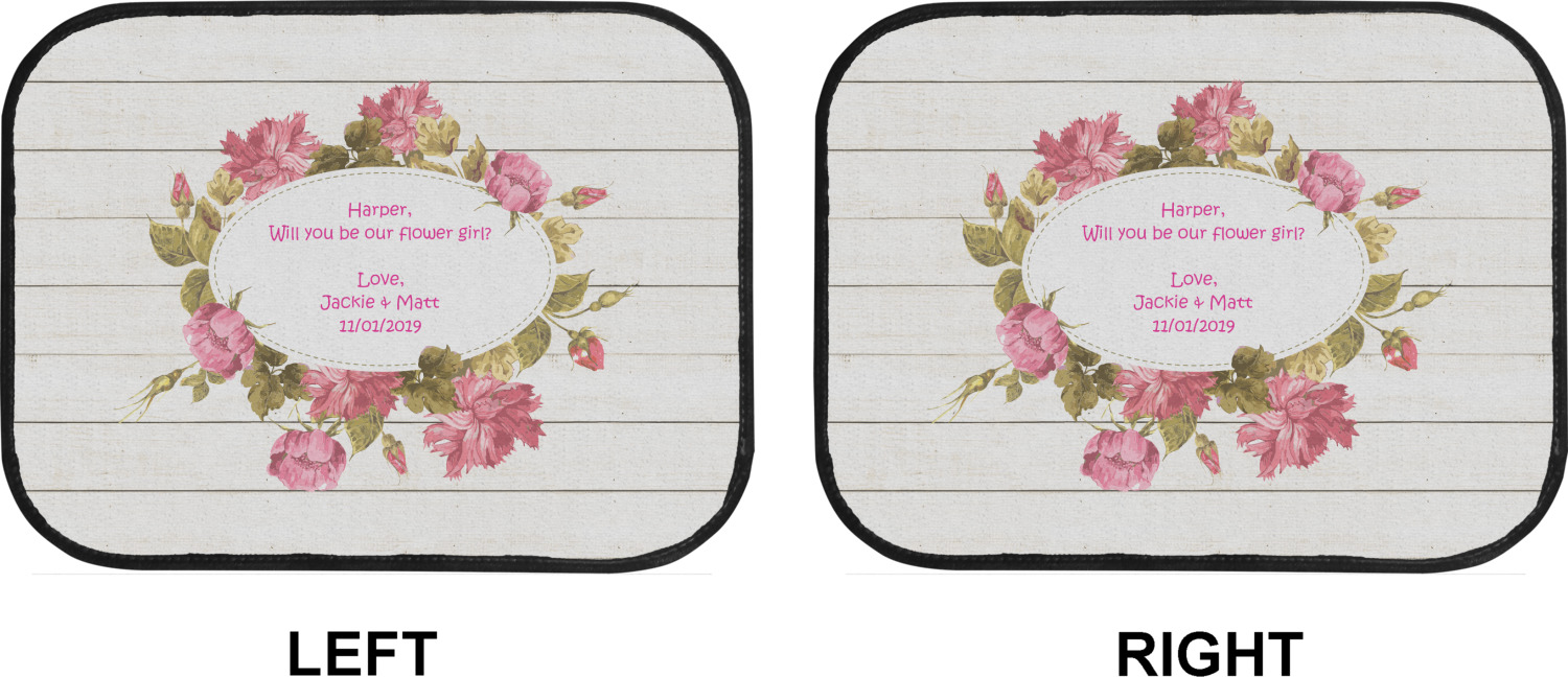 We craft our auto floor mats mats from polyester, apply a black finish to the edges, and lined at the bottom to prevent slippage. These mats protect your floors from grass, mud, and any accidental spills. We display your personalized design on the front face of each mat. The sizes of these car floor liners are standardized to provide a versatile fit for all vehicles. The front rows car mats measure at 17 by 26.5 inches, while the back rows measure at 17 by 13 inches. We sell three packages of car floor mats. You can purchase a pair of front row car mats, a pair of back row car mats, or a set of front row and back row car mats. To make an informed purchase, we recommend measuring the surface area of your car floors.