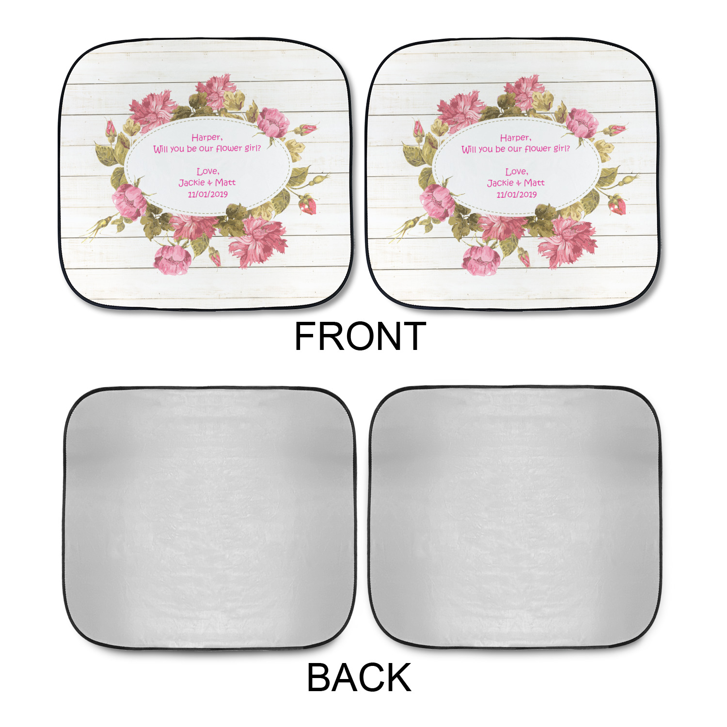 Sold as a pair and with your design printed on the front and the back having a reflective silver material these are sure to reduce the temperature of the inside of your car and keep UV rays from prematurely wearing your dash and interior panels. You have the option of both being the same design or design them separately for a unique look that will have all of your friends asking where you got your car windshield sun shades.