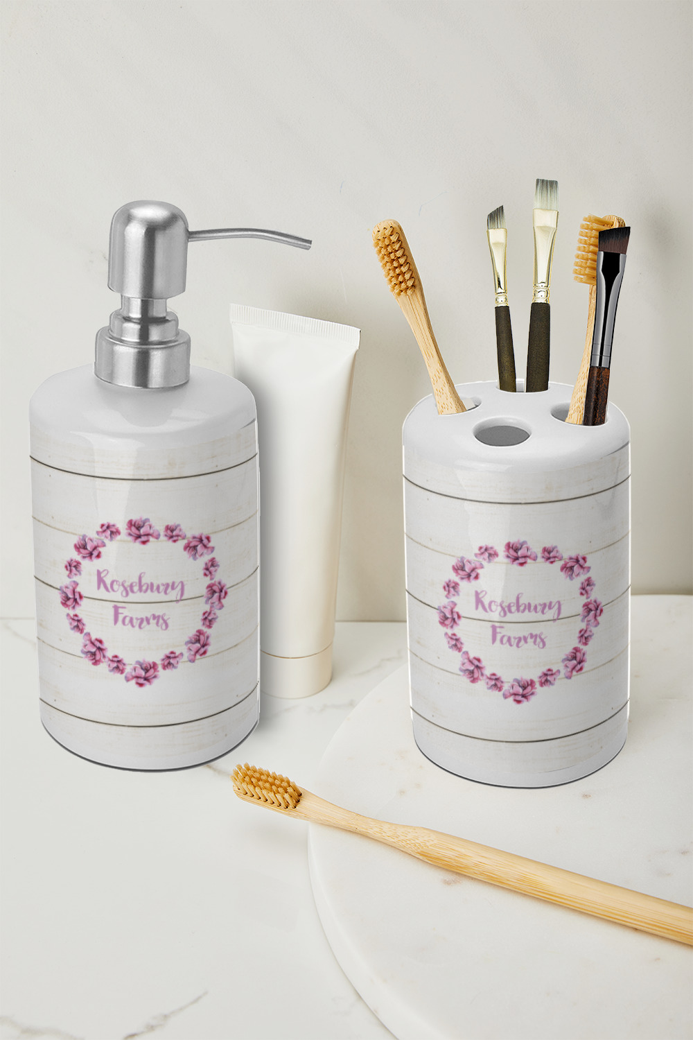 | Product Dimensions | Ceramic Soap / Lotion Dispenser (4" x 3" x 7") Ceramic Toothbrush Holder (3" x 3" x 4.5") |